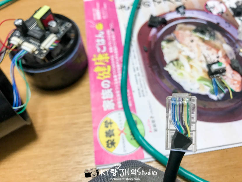 인터넷에서 핀 맵을 찾아봐도 RJ45 규격의 여러 종류의 핀 맵이 있었지만 제가 쓰고 있는 카메라는 배선 규격이 다른지 케이블 색깔도 다르고 도움이 되는 정보가 전혀 없었습니다. (이때부터 작업이 꼬이기 시작했습니다.)