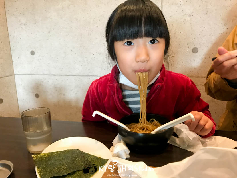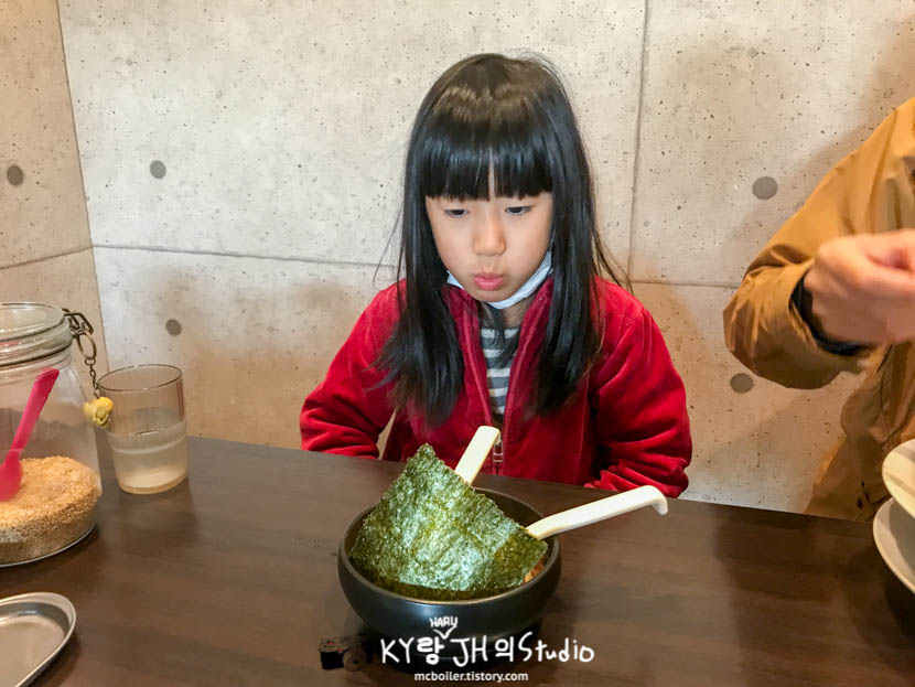 하루는 엄마가 곱빼기로 시킨 생강 간장 라멘을 조금 덜어 주고 토핑으로 좋아하는 김을 추가로 시켜 줬습니다.