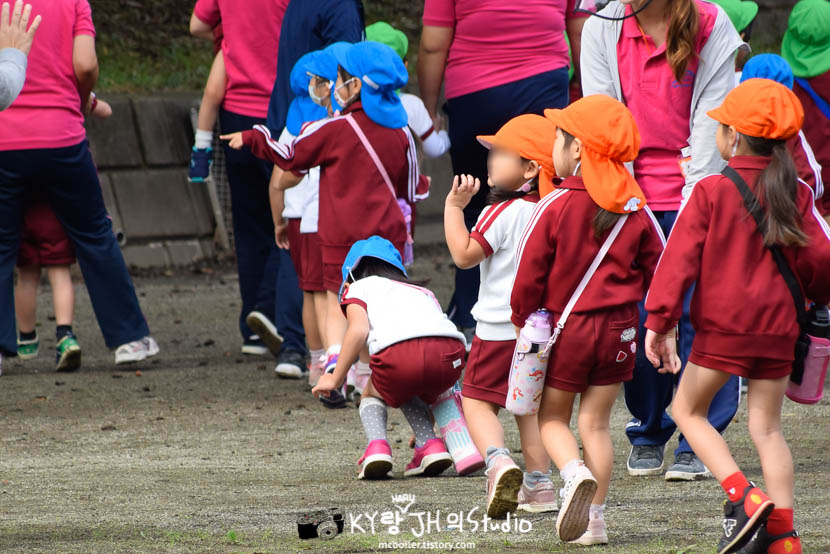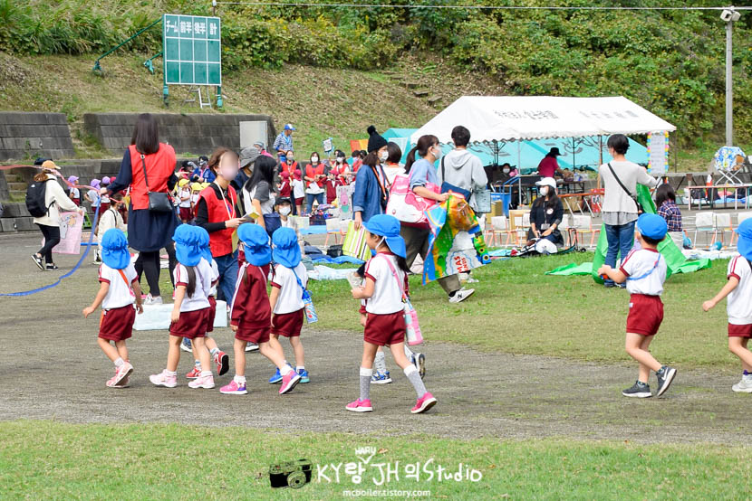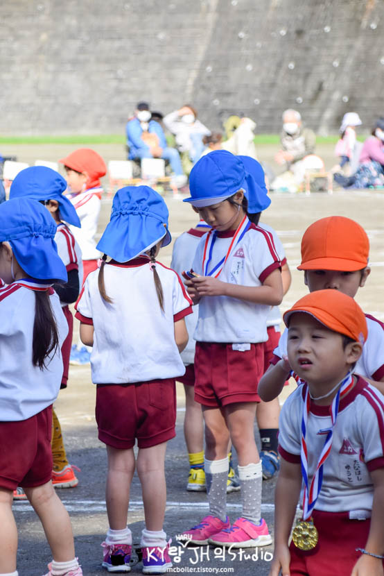 카요는 임원이라서 3년차(年長:넨쵸) 아이들이 릴레이 할 때 다리 펴고 앉아 있는(?) 역할을 해야 했습니다.