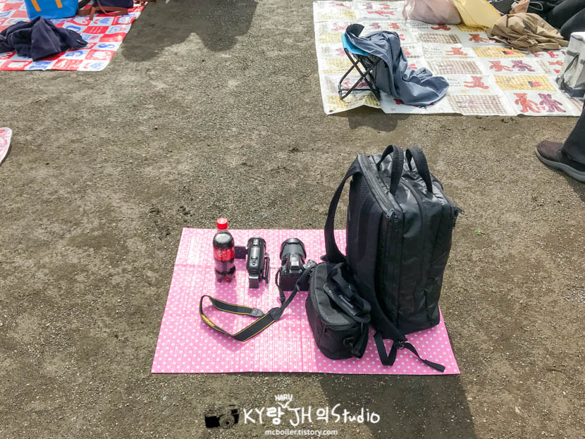 어차피 저 혼자 자리에 앉아 있을 시간도 없을 것 같아서 사진에 보이는 아주 작은 돗자리 하나만 들고 가서 가방만 내려놓았습니다.