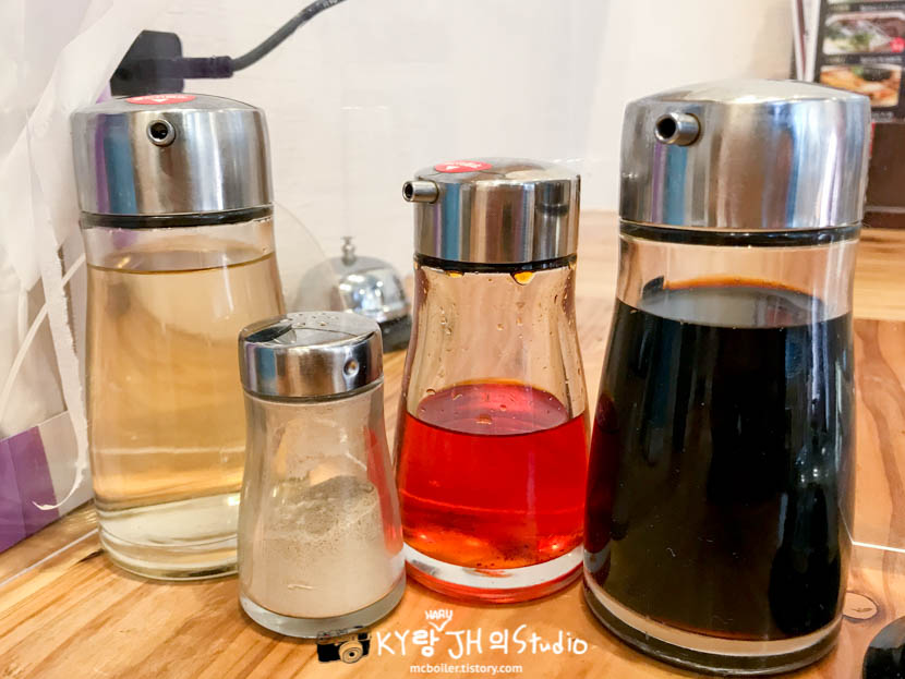 음식이 나올 때까지 가게 안을 간단히 둘러봤는데 새로 생긴 지 얼마 안돼서 그런 건지는 모르겠지만 양념통이 깨끗해서 마음에 들었습니다.