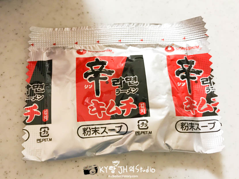 일본에서도 한국 라면 중에 가장 유명한 '신라면'인 만큼 포장지의 절반은 신라면의 포장지 디자인을 그대로 채용하고 있었습니다.