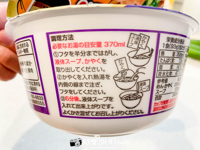 그리고 액체 스프에 잘 짜서 넣으라는 설명이 써 있어서 그대로 마지막까지 잘 짜서(?) 넣었는데 액체 스프안에 기름이 조금 굳어 있는 생태 였기에 아~~이래서 잘 짜서 넣으라고 써 있었구나~~라고 느끼는 한편 이렇게 기름이 들어 있는 다른 제품들은 컵라면에 뜨거운 물을 붓고