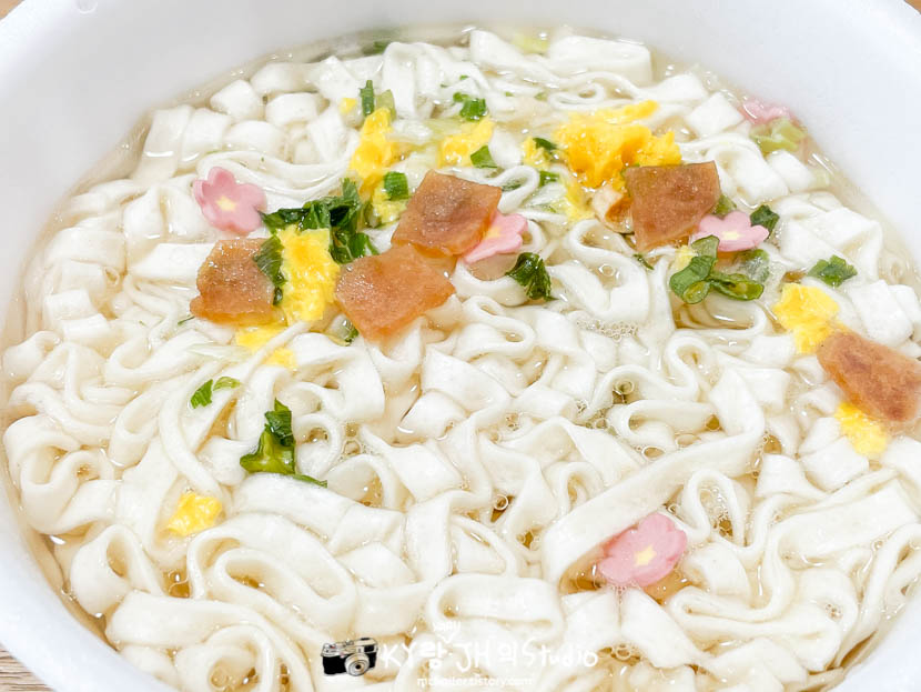 건더기 스프를 털어(?) 넣었더니 꽃 모양 어묵도 들어 있고 아기자기했는데 건더기 양은 적은 편이었습니다.