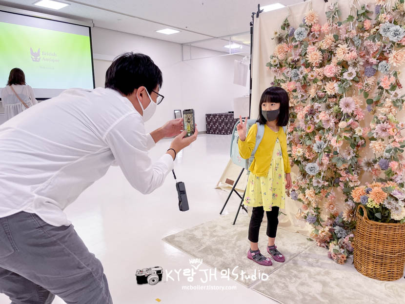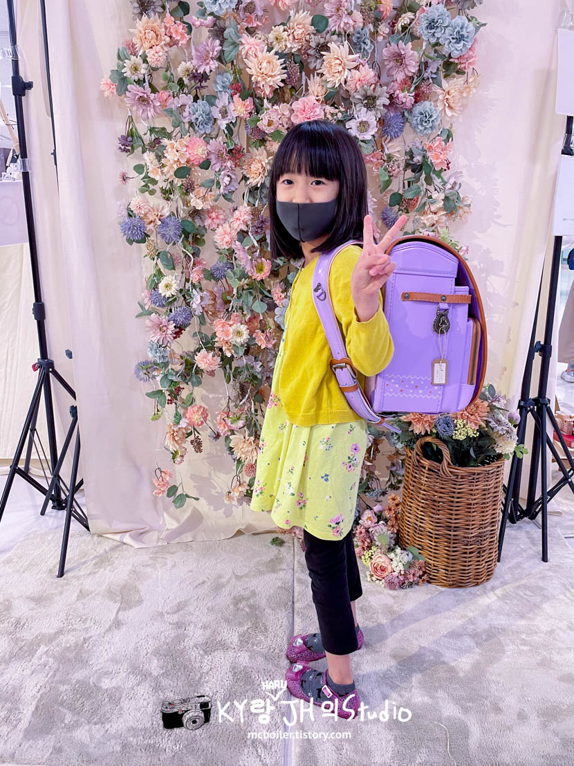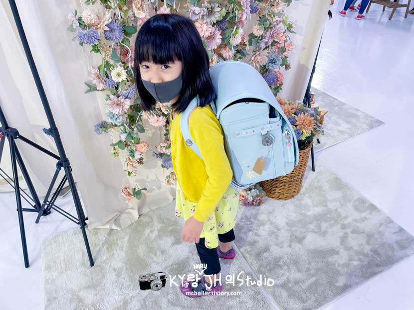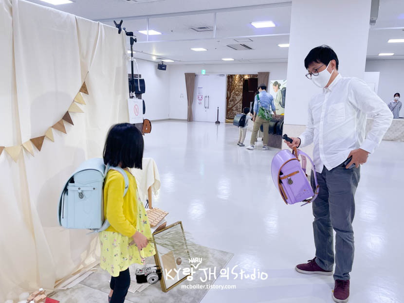 하지만 모델 시리즈 별로 전시해 둔 란도셀들 사이에 란도셀을 메고 기념사진을 찍을 수 있는 촬영 부스도 준비 되어 있어서 좋았습니다.