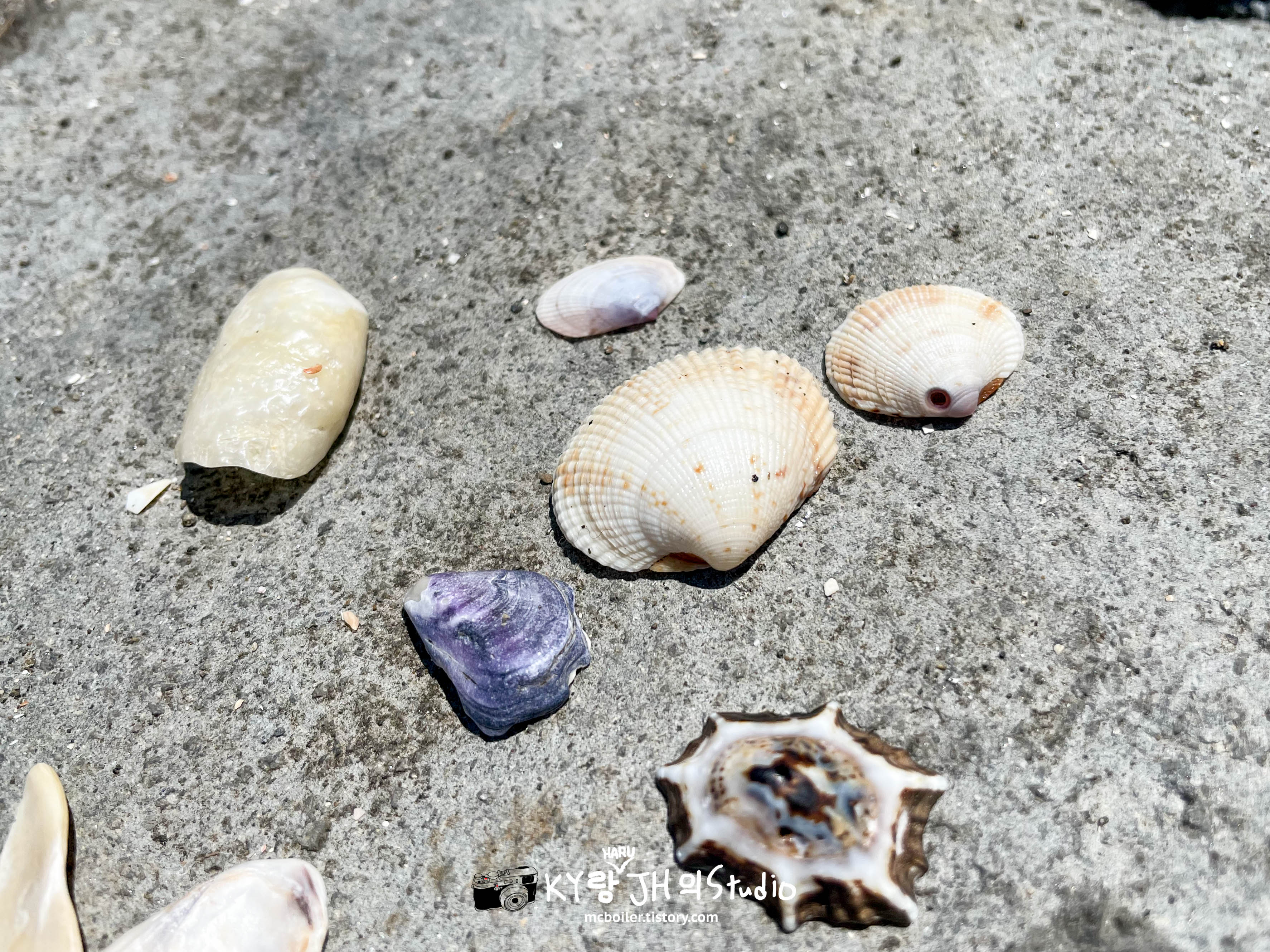한동안 물놀이를 마치고 나서는 조개껍질을 모으기 시작한 딸아이...
