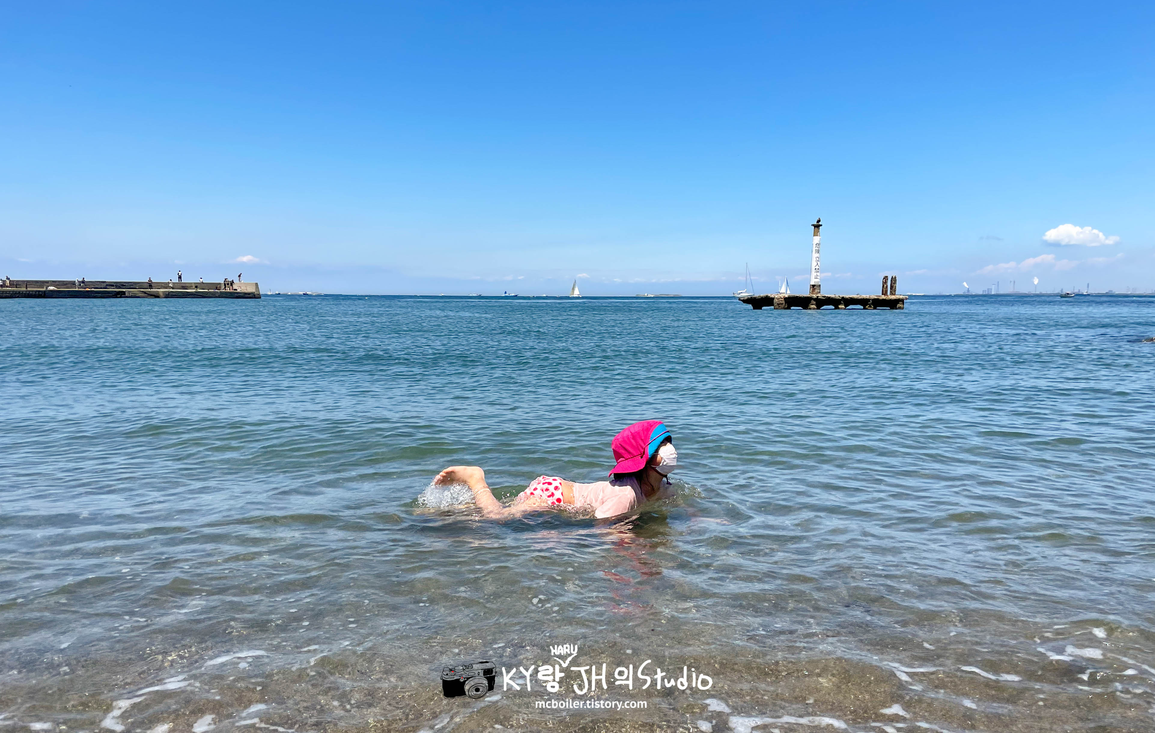 칸논자키 공원은 이날 처음으로 가 봤는데 비치는 조금 좁았지만 아직 작은 아이들과 함께 가족이 물놀이하기에는 충분했고