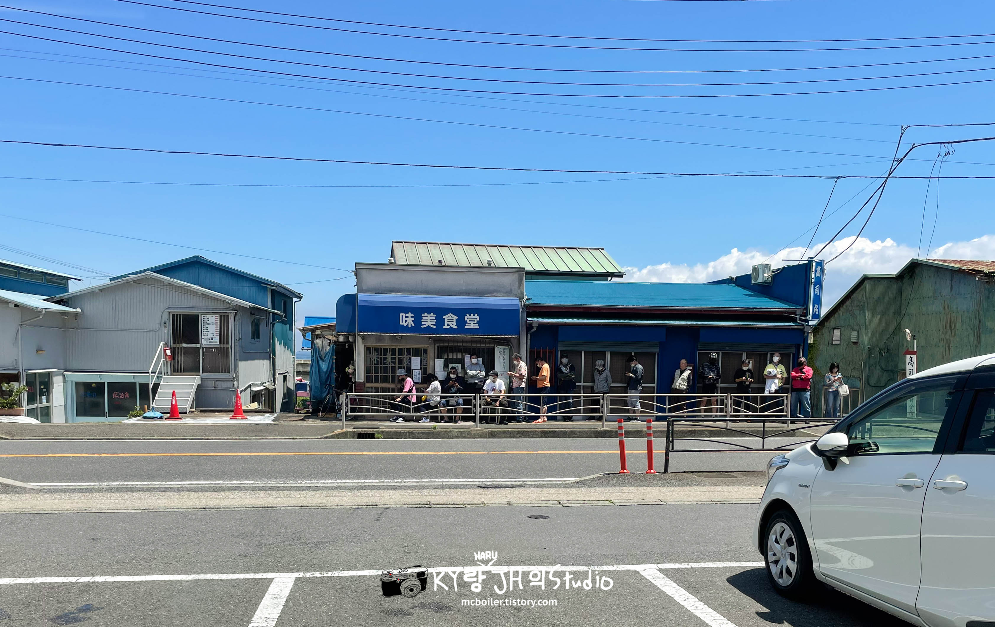 아지미 식당(味美食堂)이라는 작은 식당 앞에 늘어서 있는 행렬을 보고 '뭔데 저렇게 줄을 서 있지? 맛집인가?'라는 궁금증이 생겨서