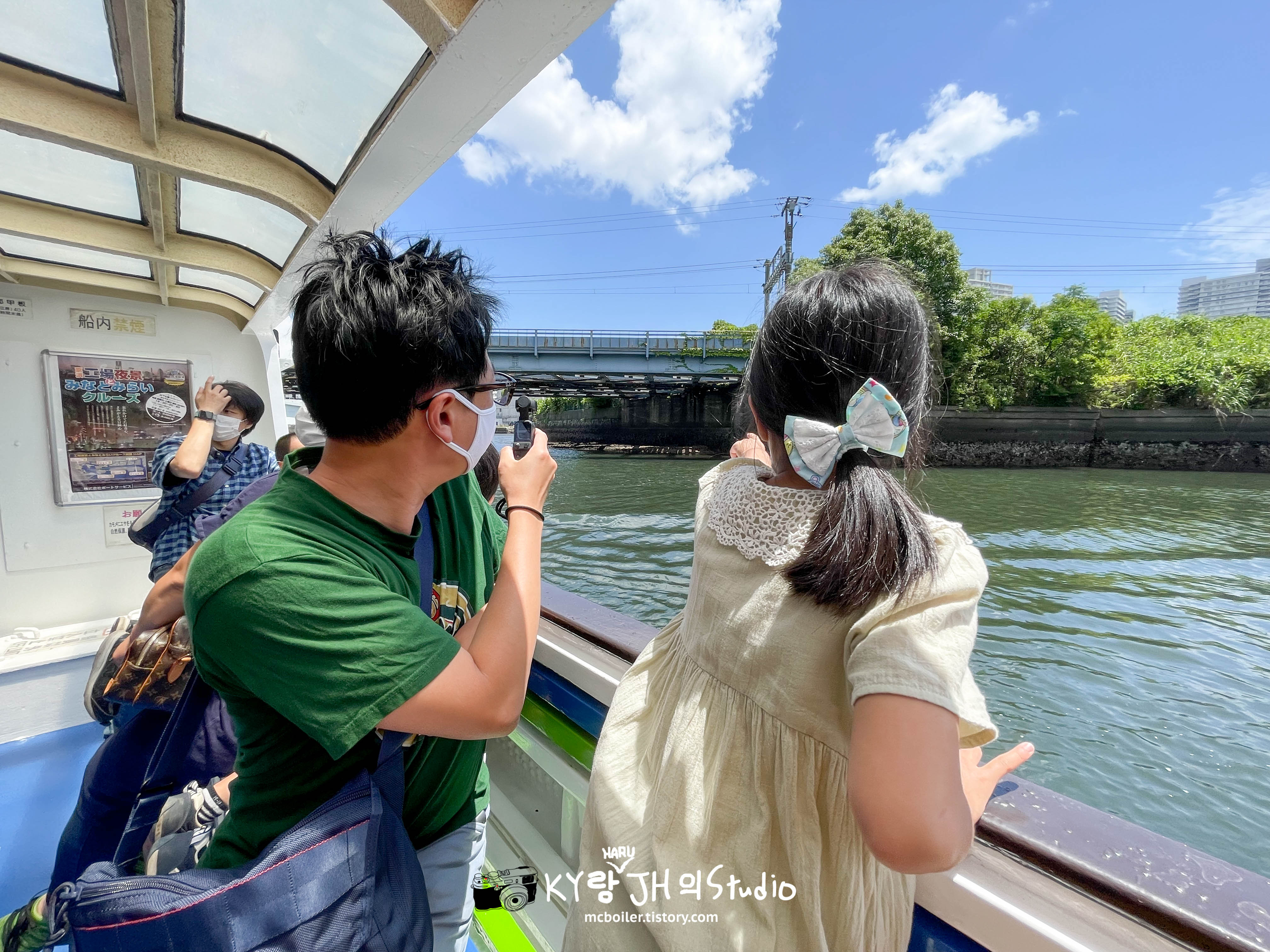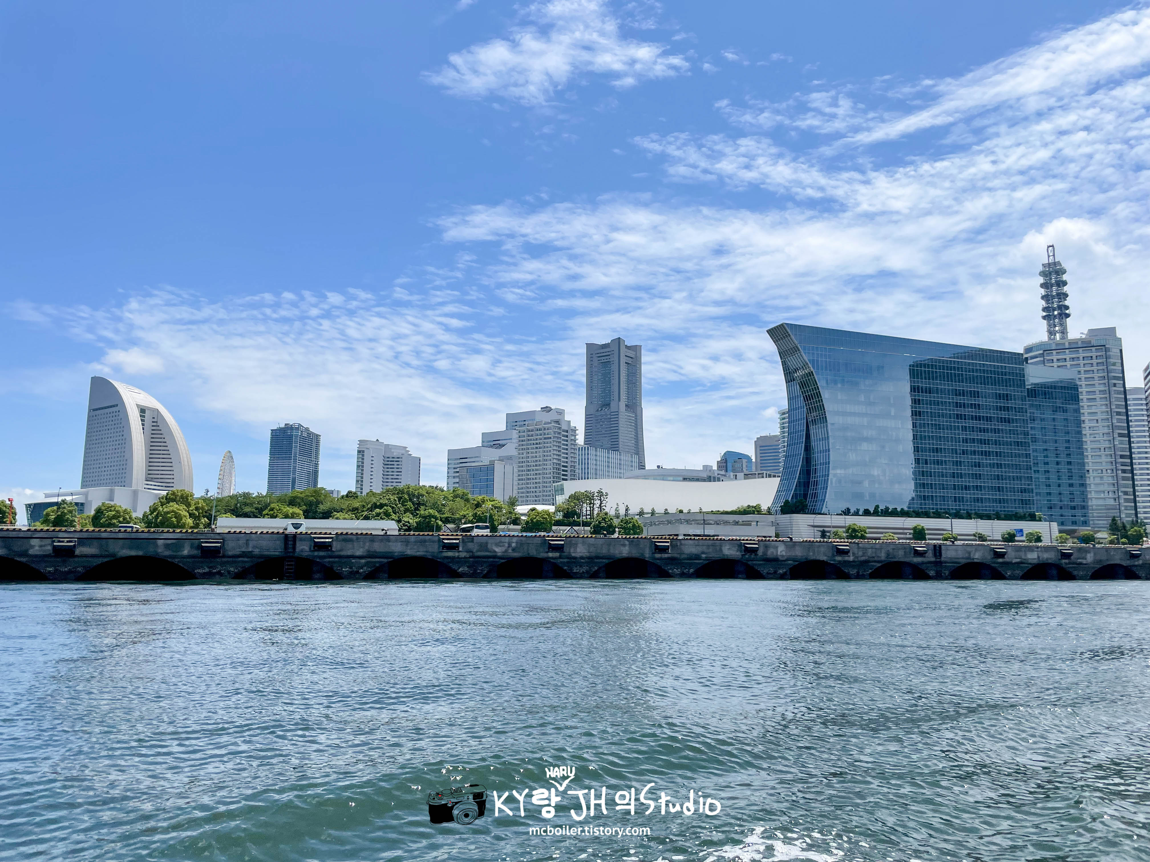 배가 요코하마 동쪽 출구 선착장을 출발하고 난 뒤에 얼마 지나지 않아 다리도 지나가고 선로 밑도 지나가고 했는데