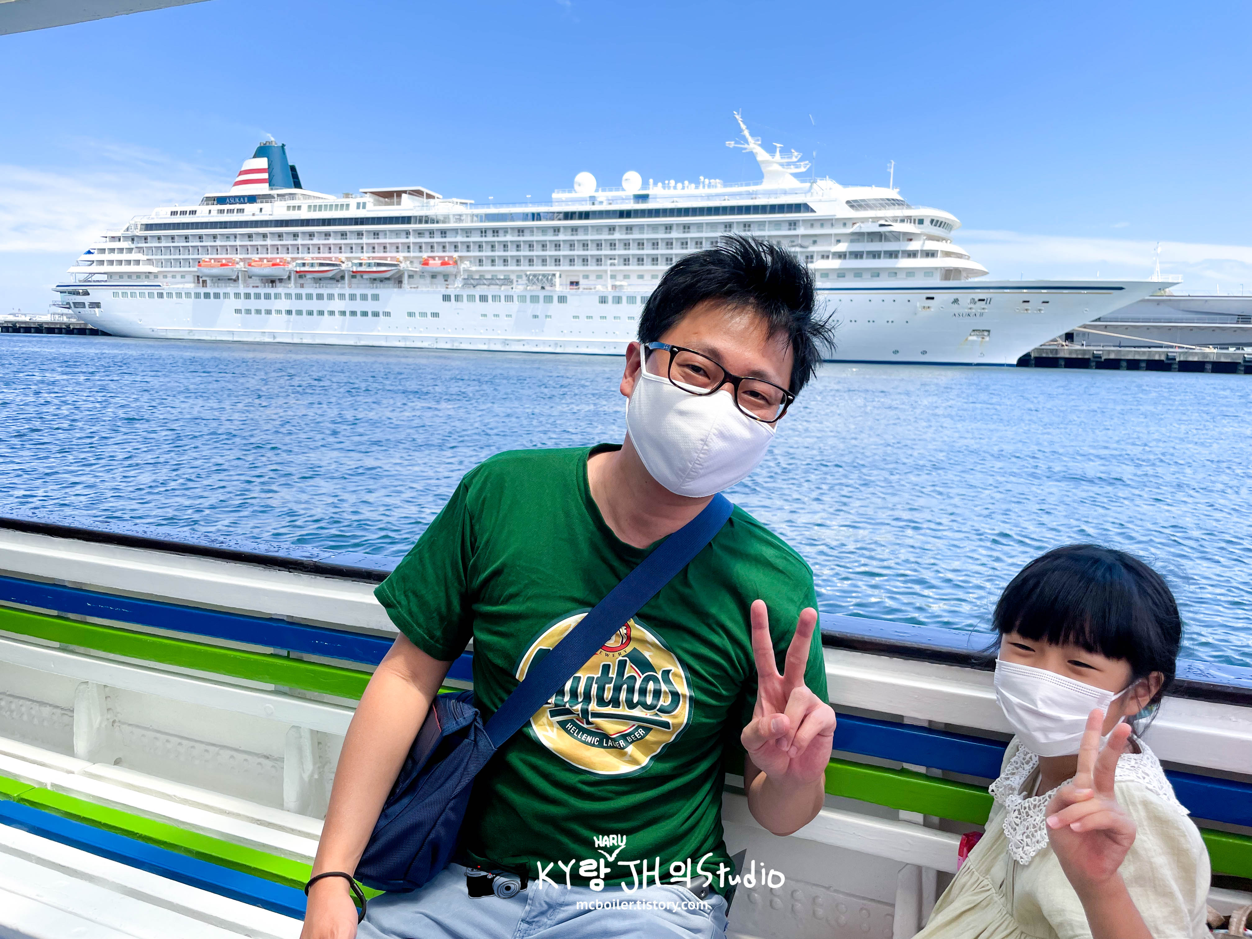 지난번에 모니터 구경하러 요코하마에 왔다가 수상 버스를 보고 하루가 타고 싶다고 했었는데