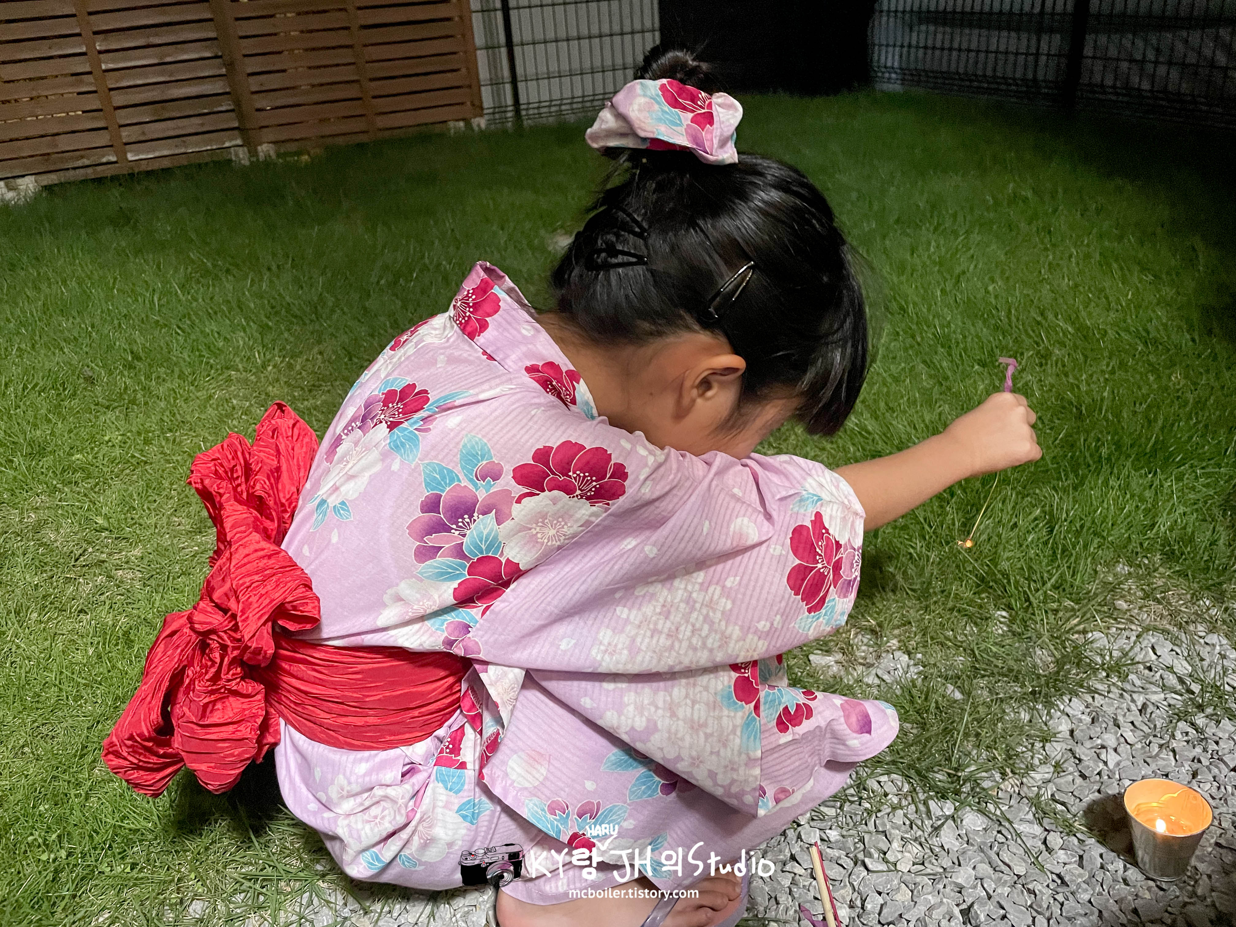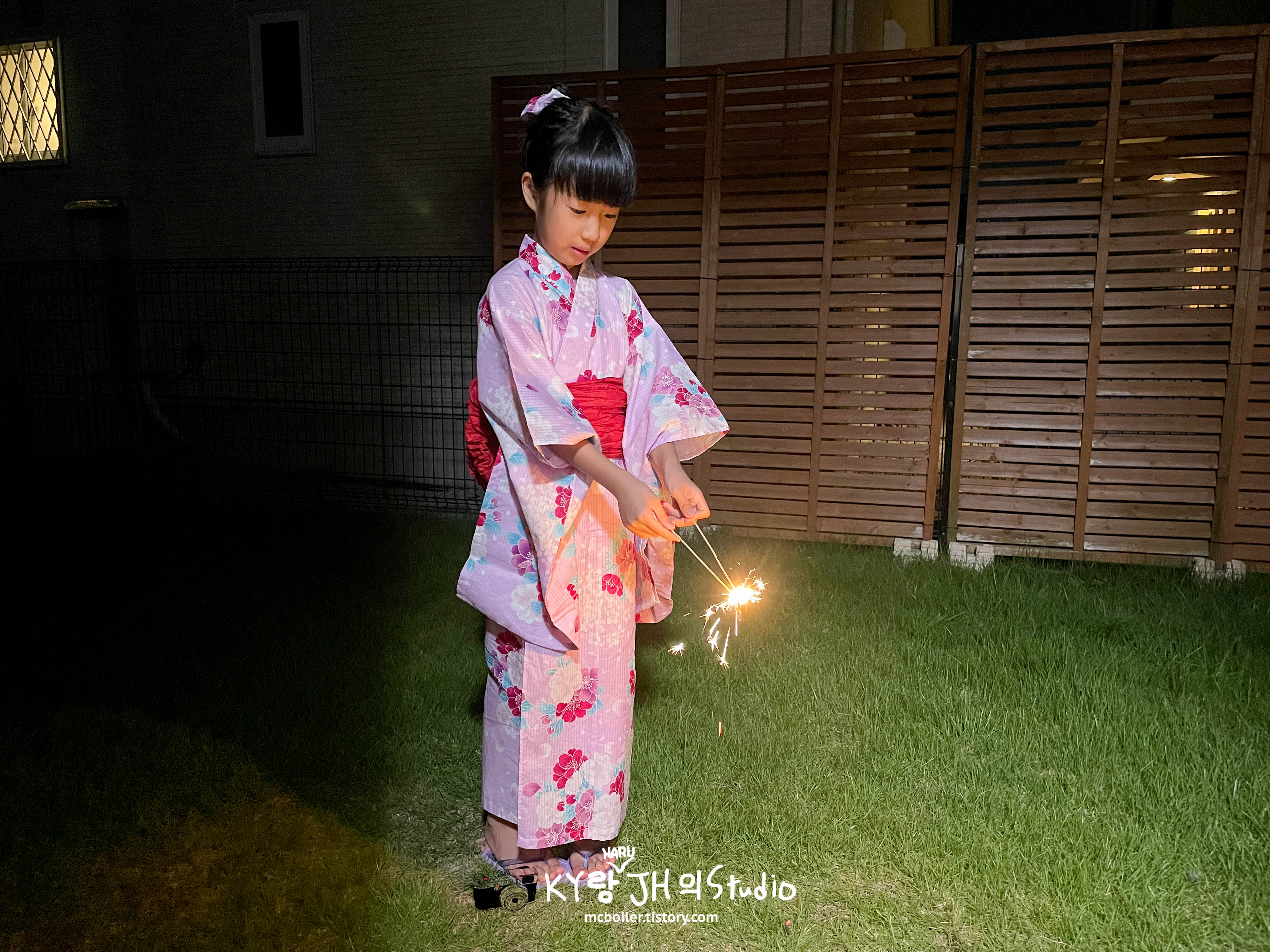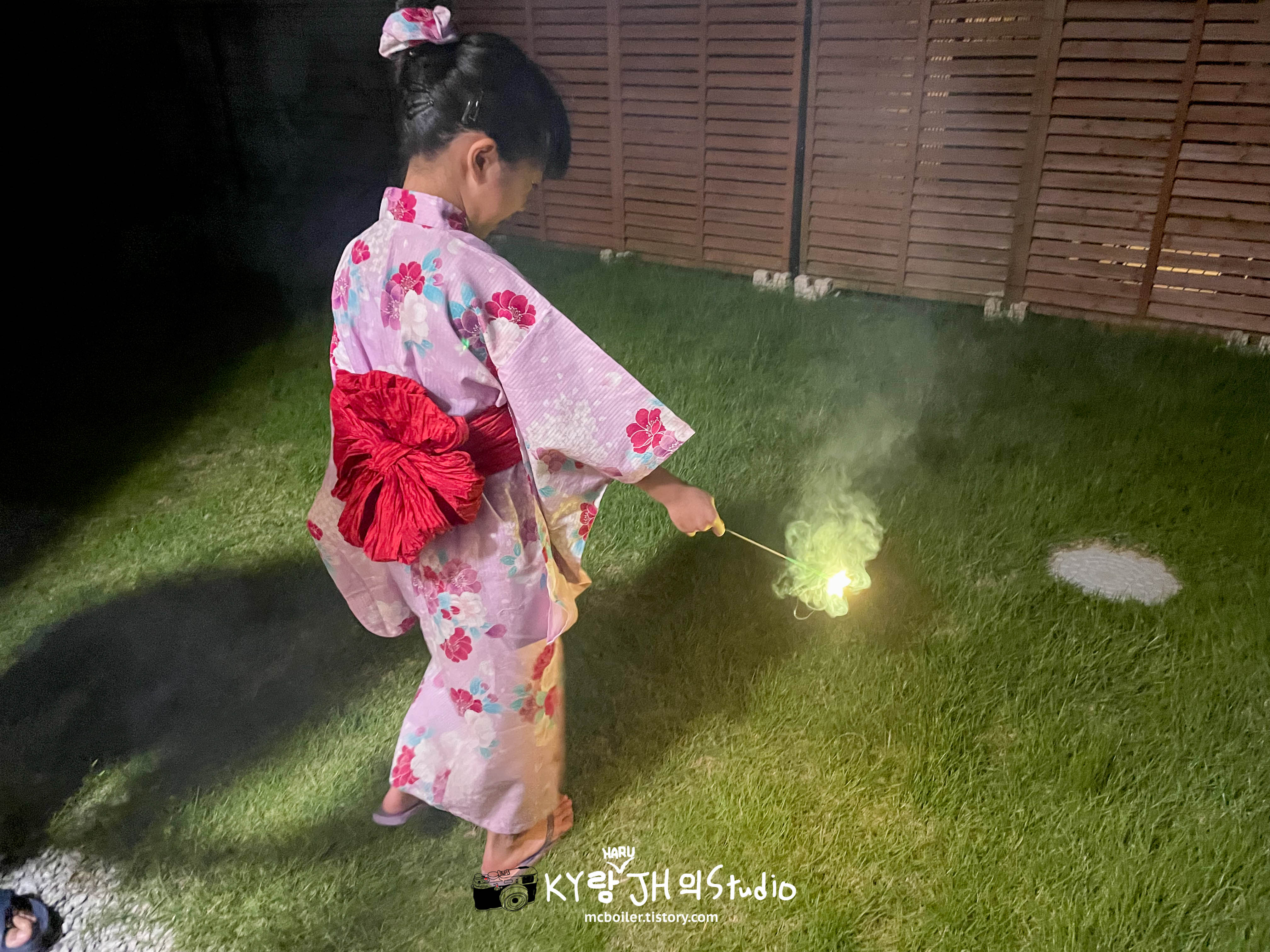 9월의 어느 휴일 저녁에 하루를 유카타로 갈아 입히고 뒤뜰에 데리고 나와서 불꽃놀이를 하면서 올해 여름을 마무리하기로 했습니다 ^^