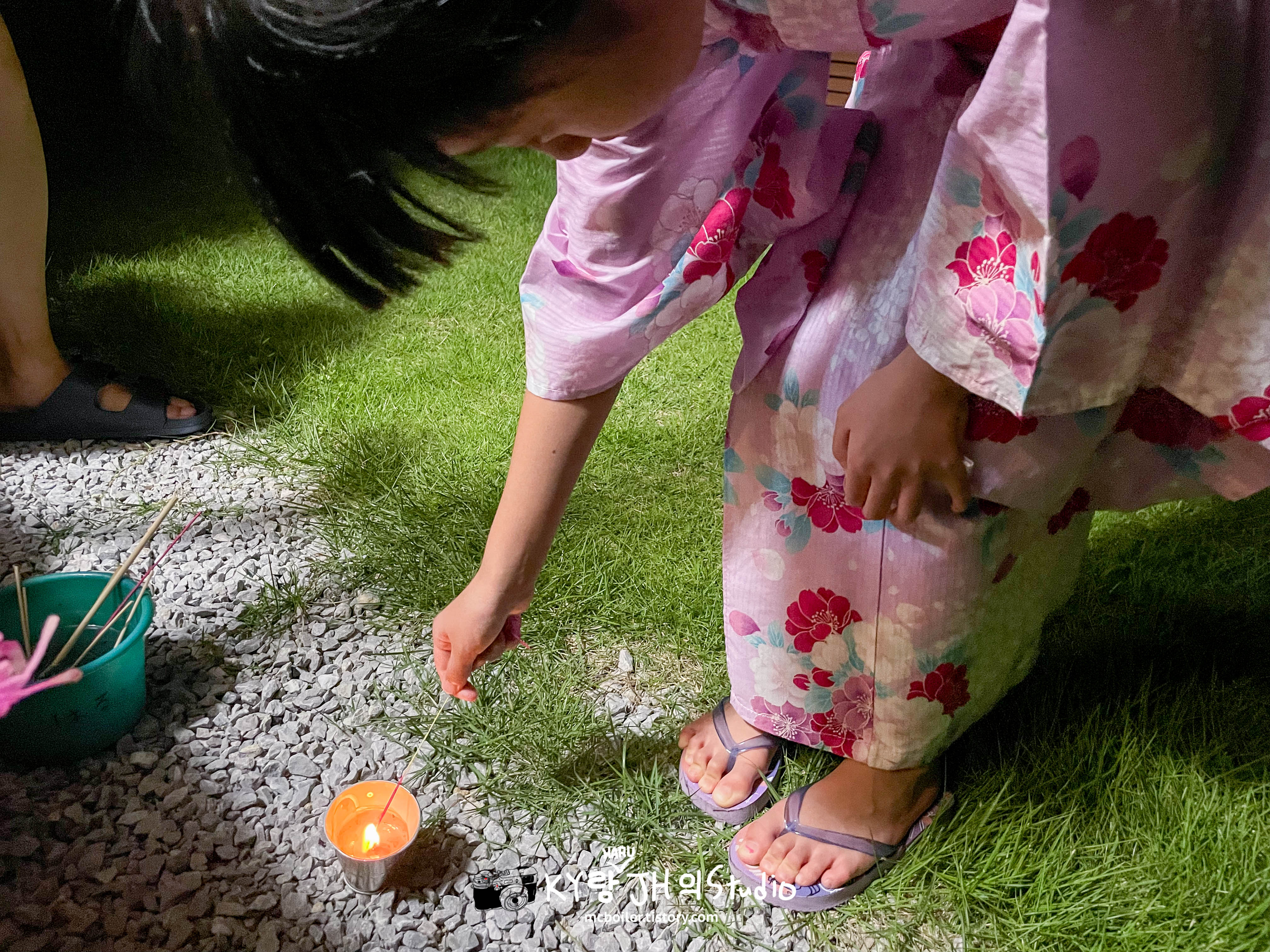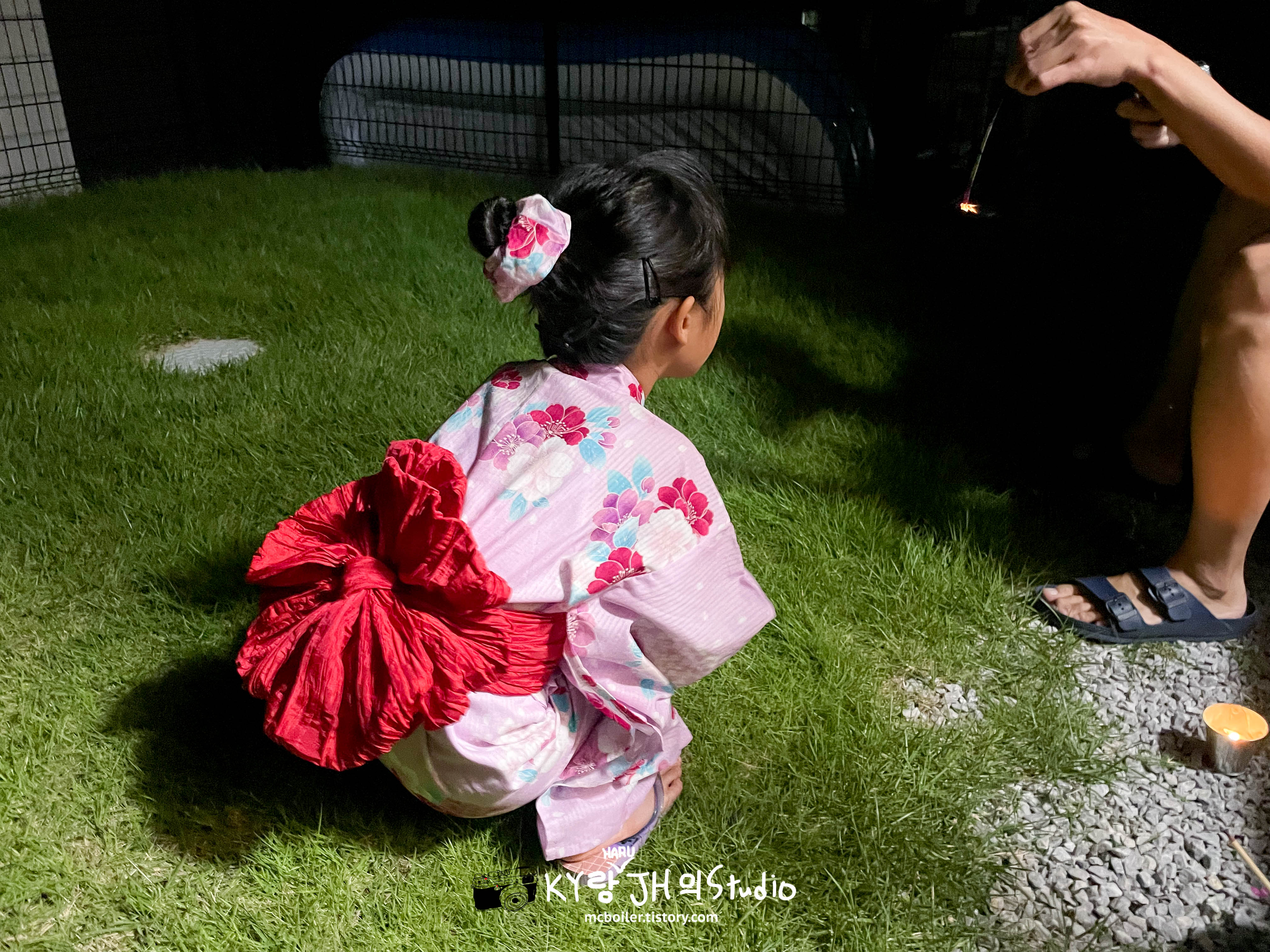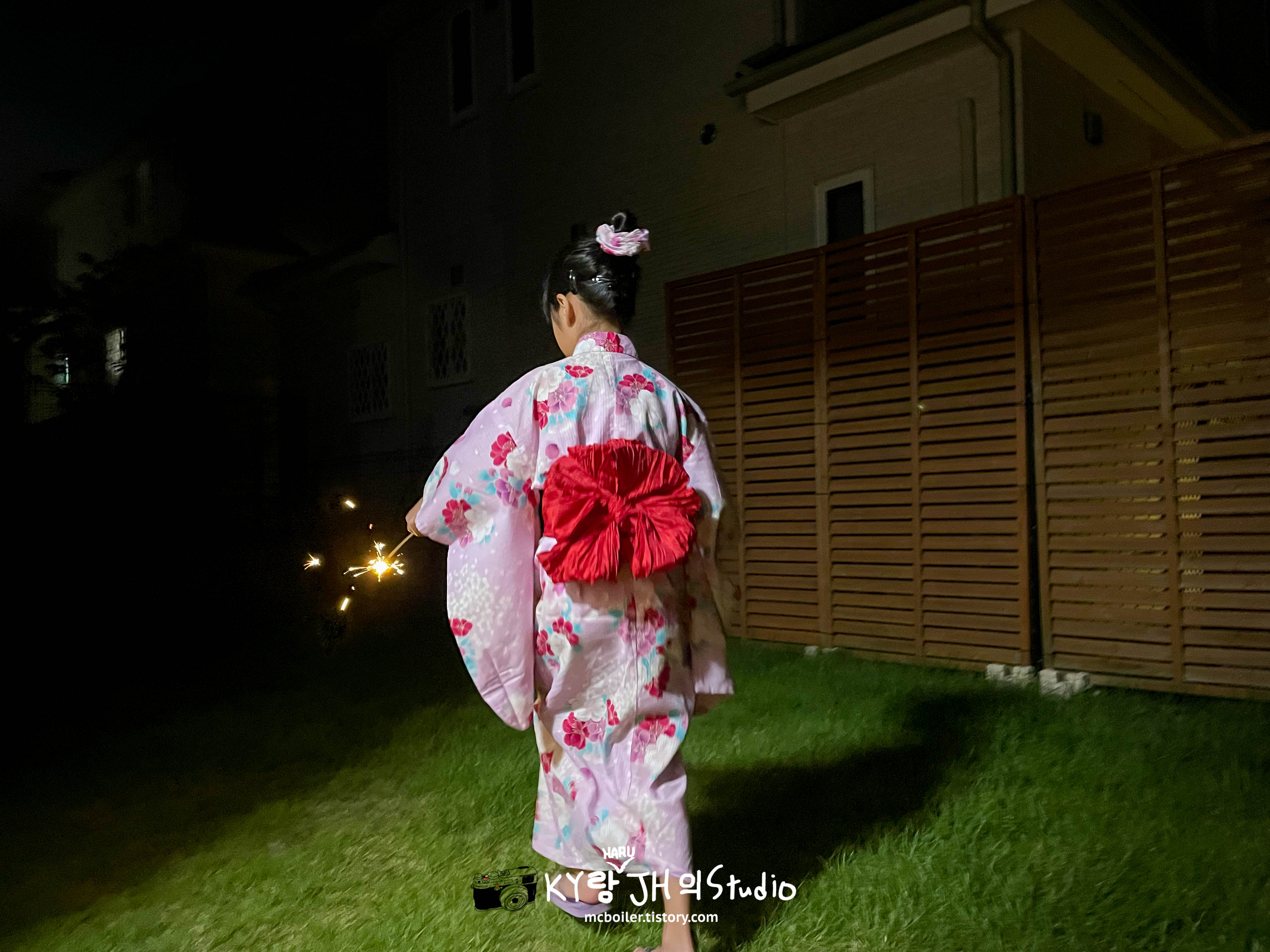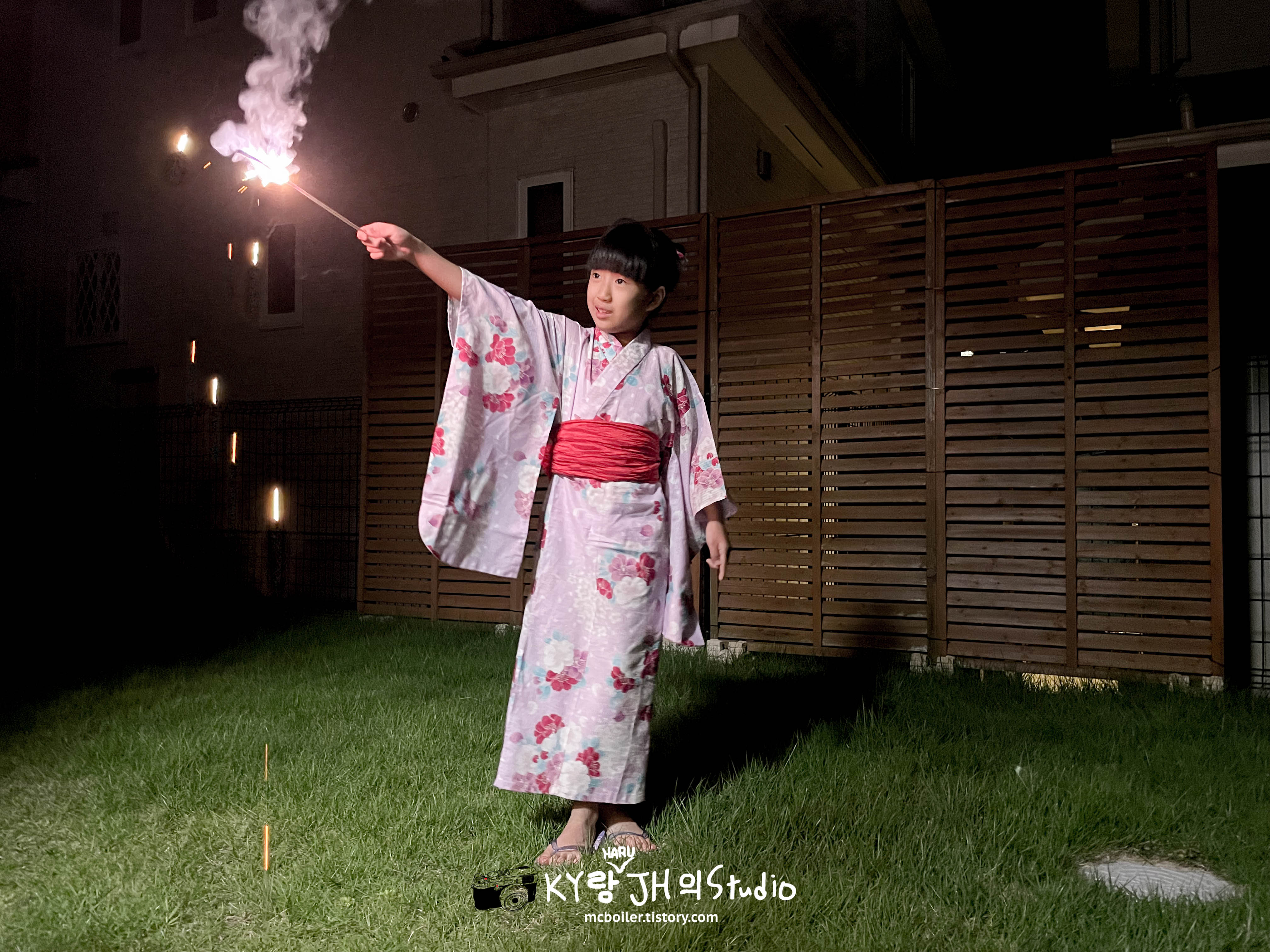 9월의 어느 휴일 저녁에 하루를 유카타로 갈아 입히고 뒤뜰에 데리고 나와서 불꽃놀이를 하면서 올해 여름을 마무리하기로 했습니다 ^^