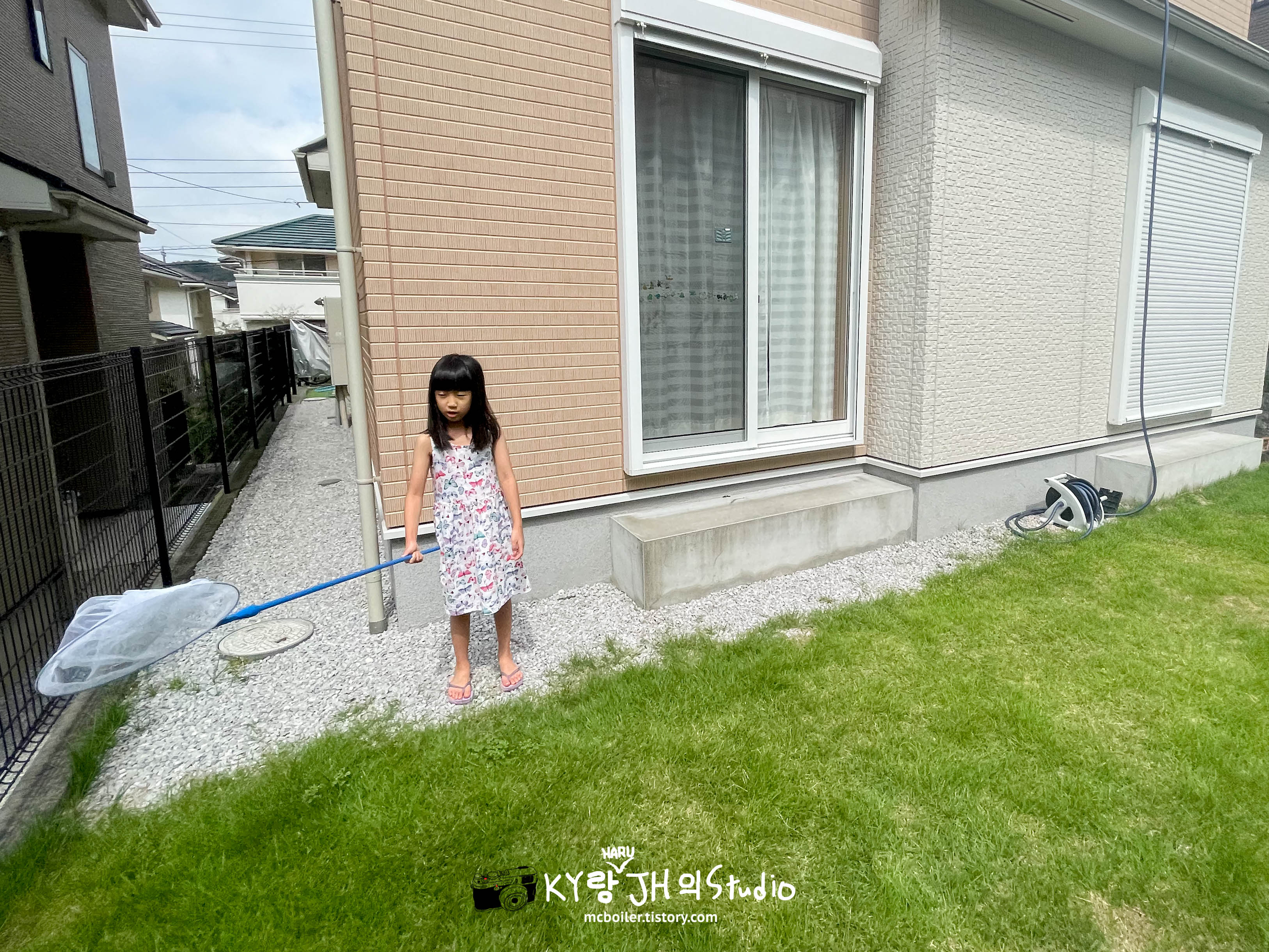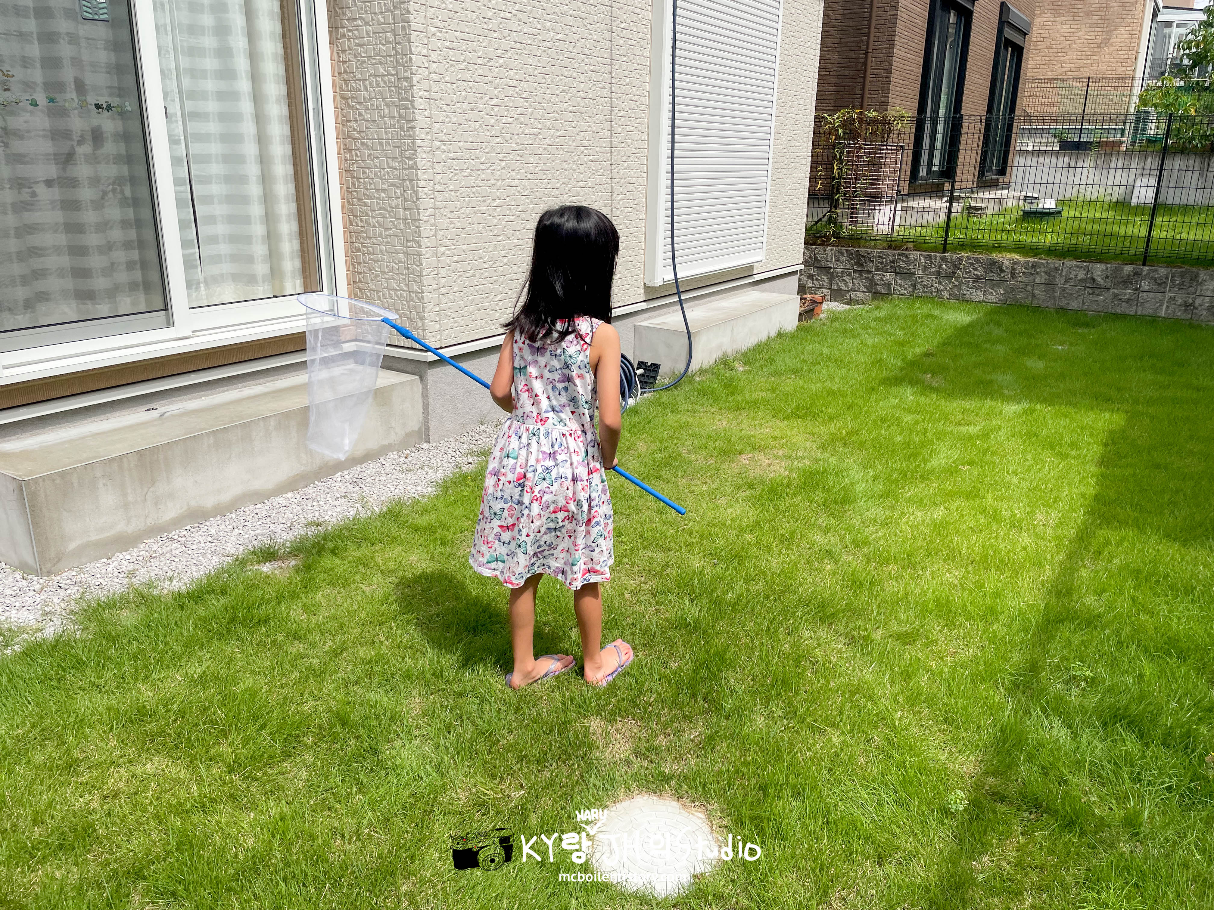 방금전에 현관 앞에서 잡은 나비를 놓친게 아쉬웠는지 바로 뒤뜰로 달려가서 새로운 나비를 찾아 다녔습니다 ^^