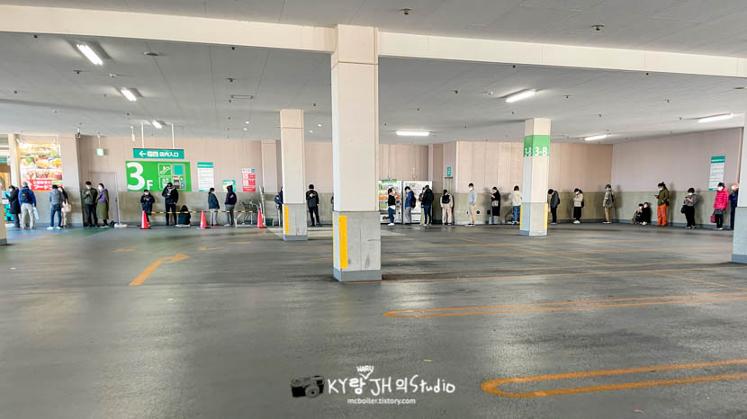 역시나 정보 입수를 한건 하루 엄마 혼자가 아니었기에 가게 오픈전인데도 벌써 주차장에 저렇게 사람들이 줄을 서 있었다고 하네요 O_O;;