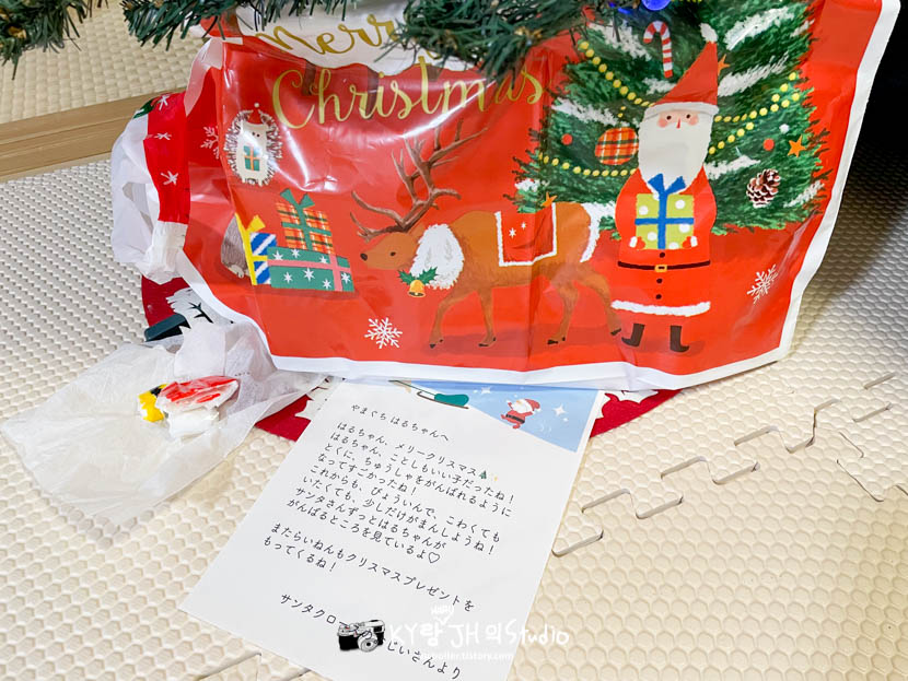 하루가 다니는 구몬 학습의 선생님도 매년 크리스마스 선물을 챙겨 주시는데 올해도 어김없이 선물을 주셨네요
