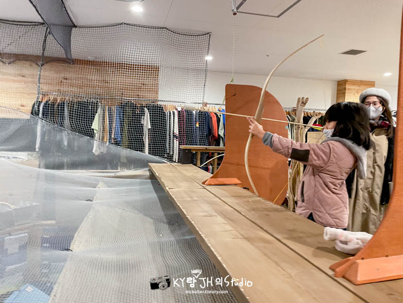 근데 장난감 같은 활이라 과녁을 맞히는 게 쉽지 않더군요