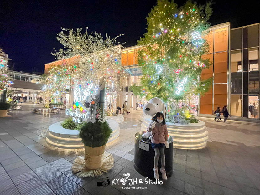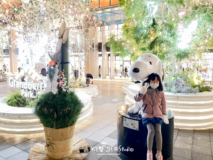 그렇게 이날 일정을 모두 마치고 집으로 돌아가는 길에 쇼핑몰 입구 쪽에 장식되어 있는 카도마츠(門松: 대나무를 잘라서 만든 일본의 신년 장식)와 스누피 앞에서 기념사진을 찍었습니다