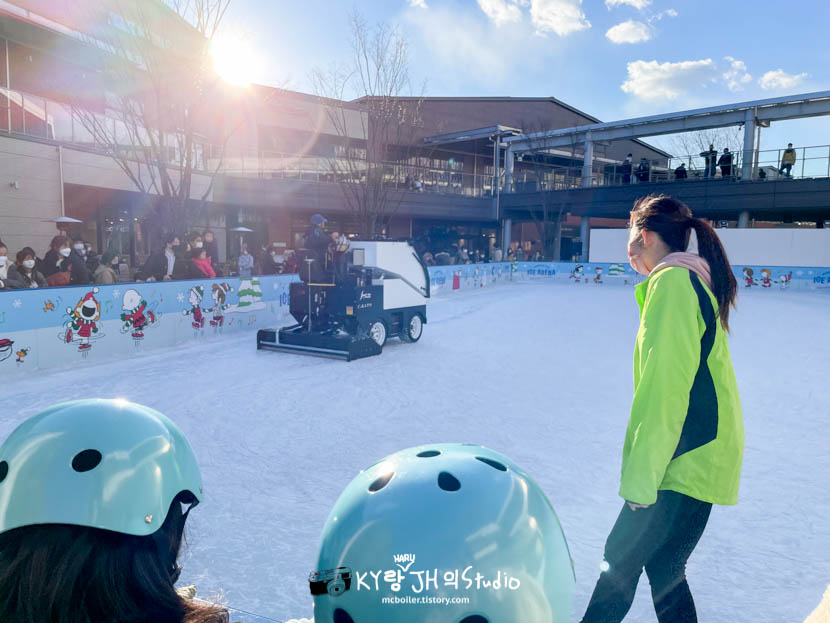 그런데 저희가 스케이트를 타기 시작한 지 30분도 안되어서 얼음판 정리 시간이 되어서 정리가 끝날 때까지 밖에서 기다려야 했습니다