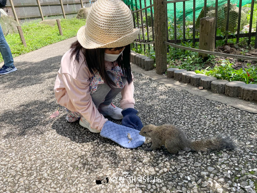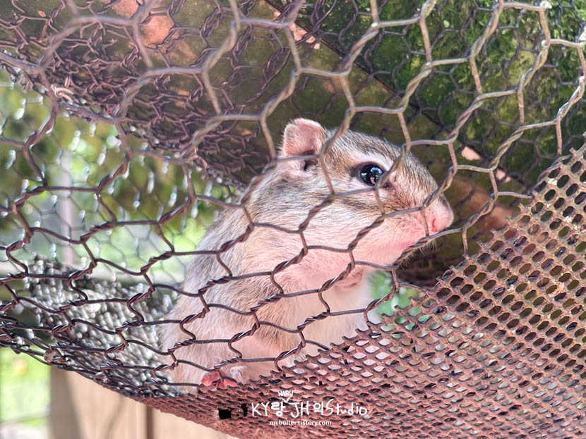 안으로 들어갔더니 바로 얼룩무늬 다람쥐가 있었습니다. 이쁘다♡