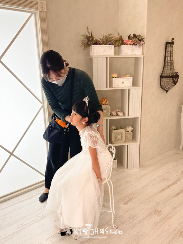 사진작가님이랑 코디네이터가 하루를 웃게 하려고 이런저런 이야기도 걸어도 표정은 계속 굳은 그대로였습니다💦