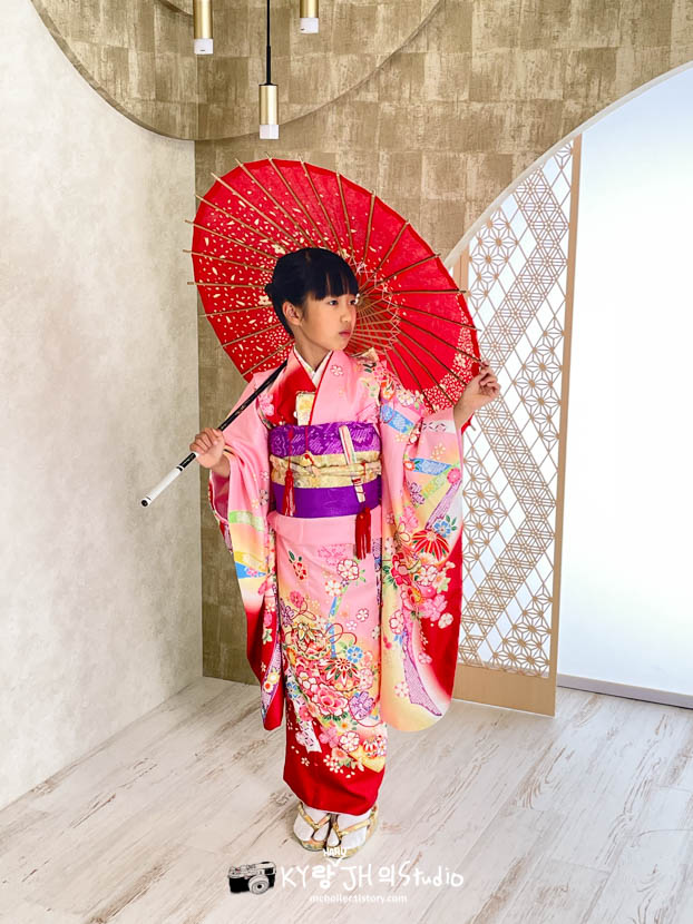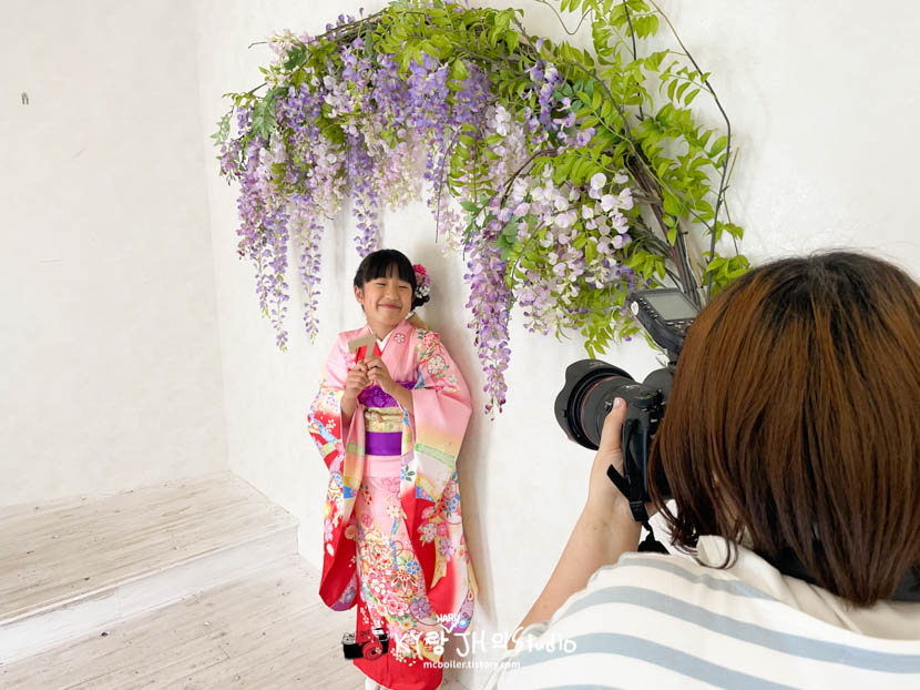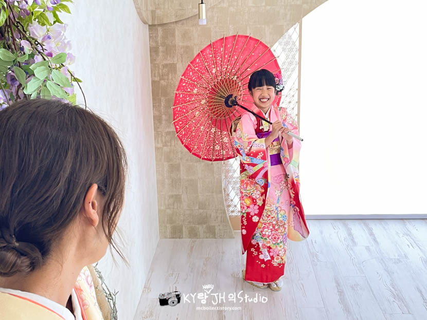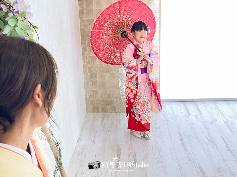 시치고산 (칠오삼 753)은 아이들의 성장을 축하하는 일본의 전통 행사입니다. 귀여운 옷을 입고 신사에 참배를 가거나 가족과 기념사진을 찍는 가족이 많습니다. 시치고산은 옛부터 매년 11월 15일에 하고 있습니다. 하지만 당일에 못하는 경우에는 10~12월에 시간이 될 때 하는 경우가 일반적으로 변해가고 있습니다. 저희 하루도 올해 7살이라 10월쯤에 신사에 참배를 갈 예정이지만 사진 촬영은 시즌 중에는 사람들이 몰려서 예약도 하기 힘들고 가격도 올라가는데 얼마 전에 스튜디오에서 미리 찍으면 할인되는 쿠폰이 온 것도 있어서 6/15(수)에 아빠가 하루 휴가를 내고 수업이 끝난 딸아이를 학교 앞에서 픽업해서 스튜디오로 향했습니다