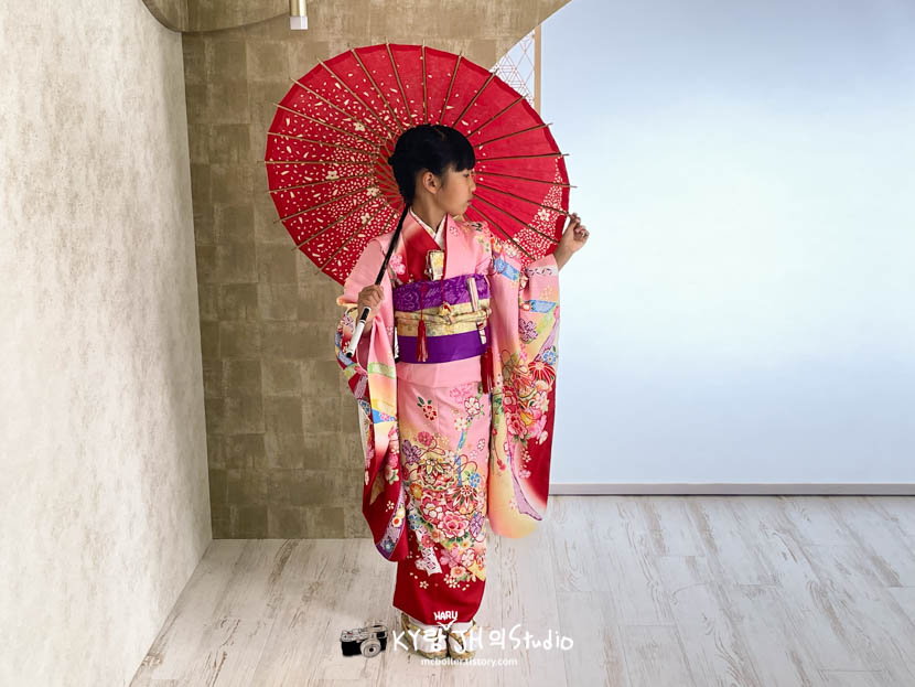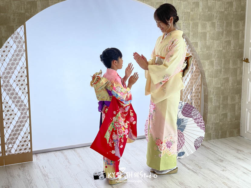 키모노를 입을 기회는 거의 없어서 3살 때의 시치고산 때도 안 입었기에 이번에는 분발해서 입기로 했습니다.