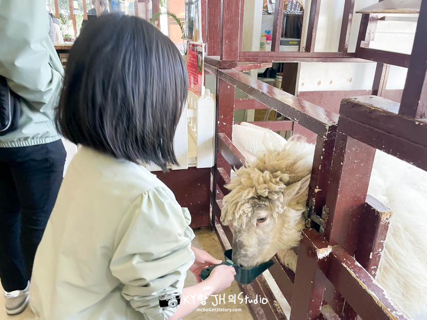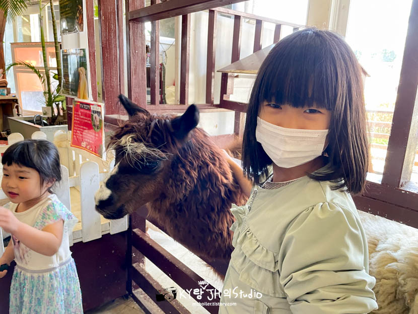 알파카(?) 먹이도 있었기에 먹이도 주고 쓰다듬어도 주고 (근데.. 냄새가.... 어휴~~)