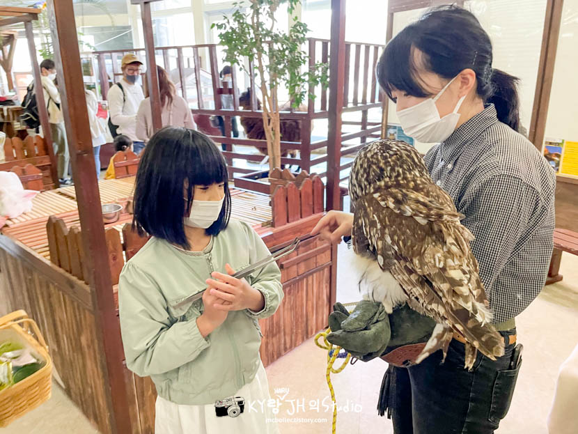토끼한테 먹이도 주고 부엉이에게 먹이 주기 체험도 하고 난 뒤에