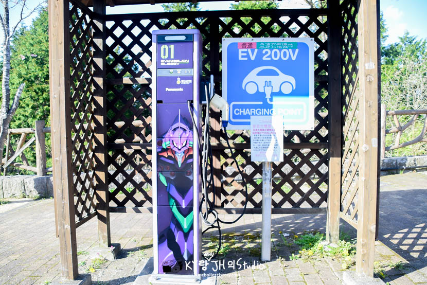 하코네는 에반게리온의 배경인 제3 신도쿄시와 네르프의 본부가 있는 곳이라 휴게소의 전기차 충전기도 초호기 디자인이었습니다 ^^