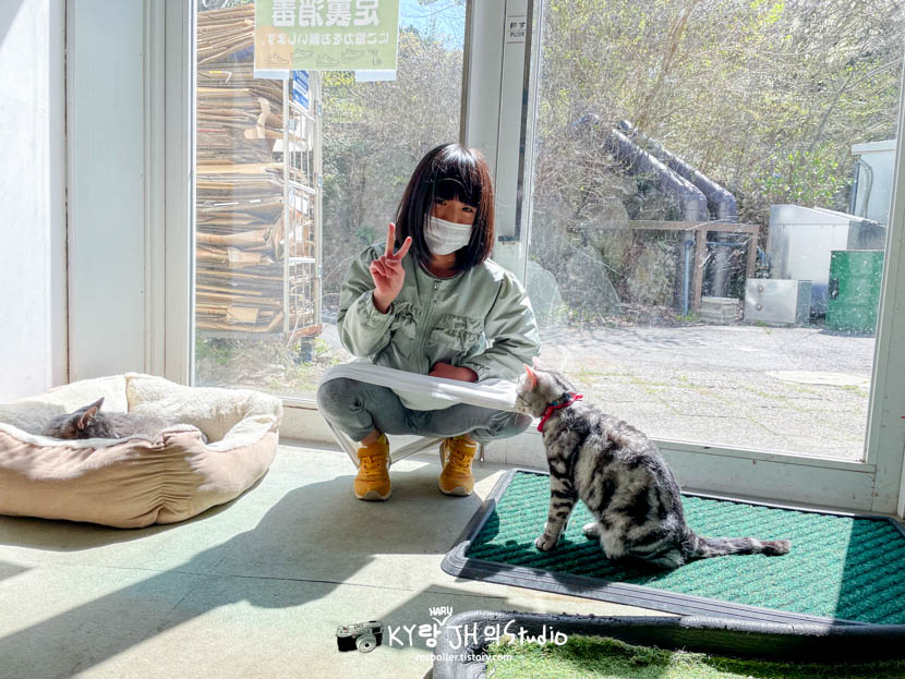 하루가 아주 좋아하는 고양이지만 알레르기 때문에 만져보지는 못하고 그저 가까이에서 사진만 찍어야 했습니다.