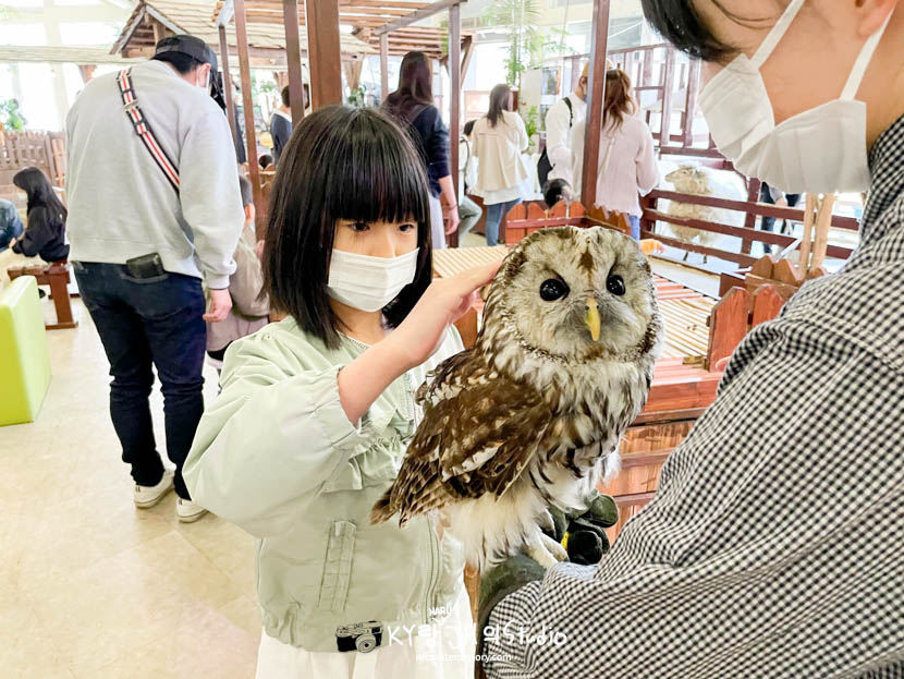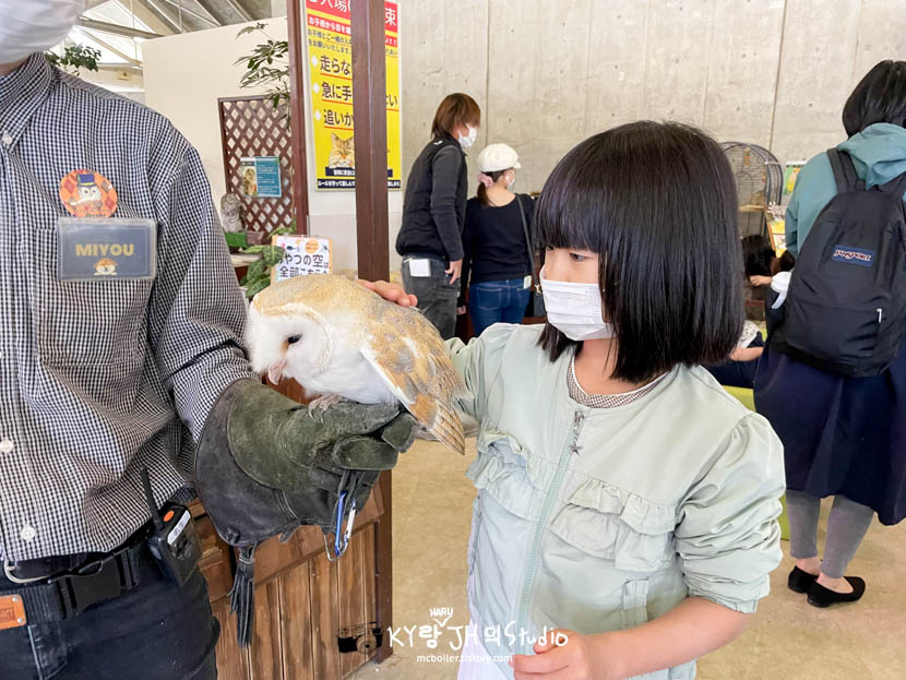 부엉이도 쓰다듬고~ (털이 얼마나 부드럽던지 만져보면 정말로 기분이 좋을 정도였습니다)