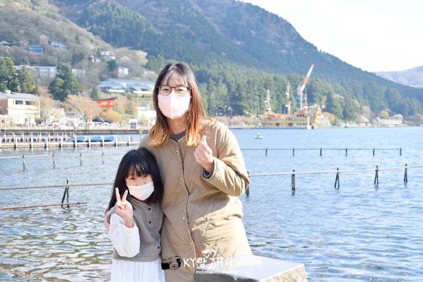 아시노코(芦ノ湖)가 보여서 잠시 기념사진도 찍었습니다
