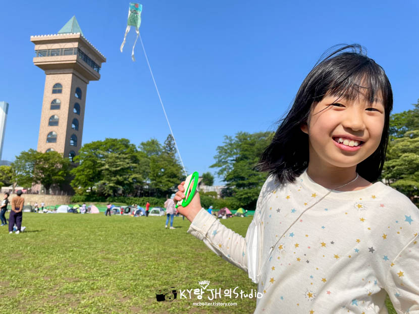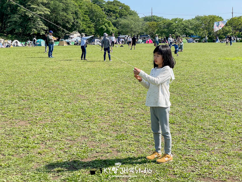 이날은 생각보다 바람도 불었기에 연을 날리면 잘 뜰 거 같아서 차 트렁크에서 하루가 학교에서 만들어 온 연을 가지고 와서 날려 봤습니다