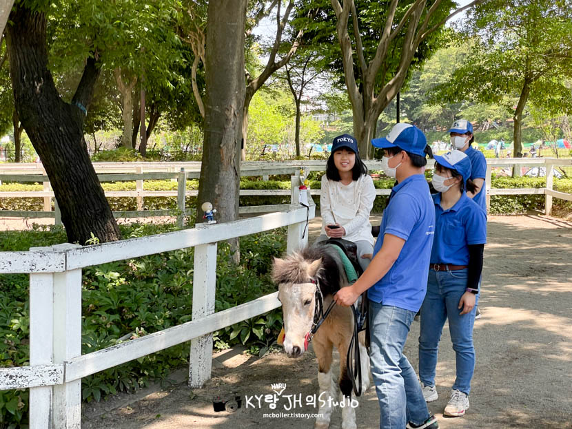 잠시 동물 구경을 하고 서둘러 조랑말을 타러 가서 티켓을 사려고 하는데 어느 분이 자기 딸이 무서워서 못 탄다고 하면서