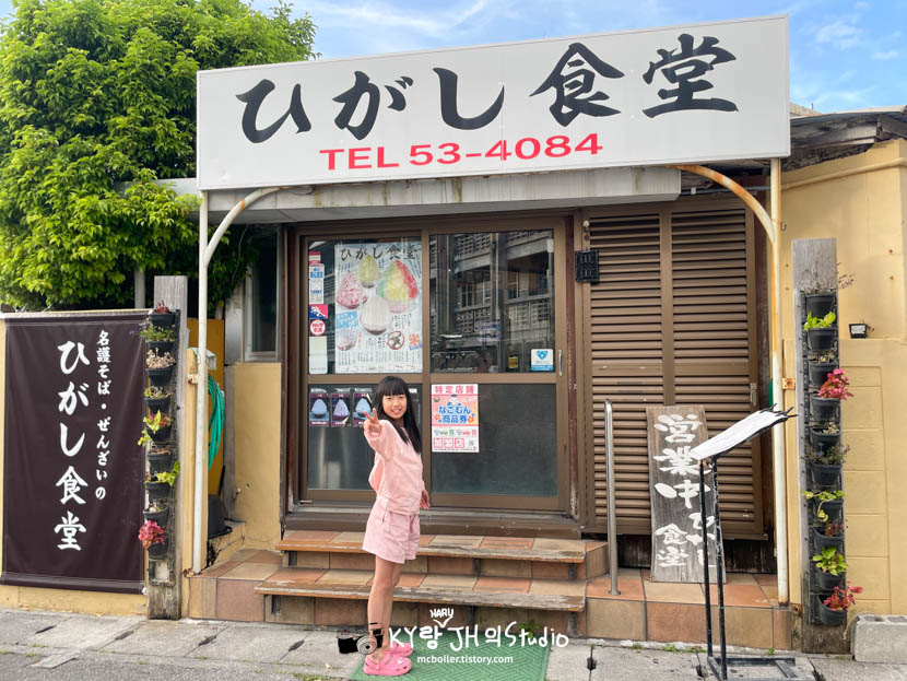 호델로 돌아가는 도중에 나고시에 있는 유명한 '히가시 식당'에 들렸습니다.