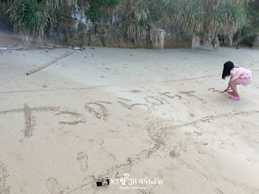 방금 전까지 헤엄치던 비치의 반대편인데 여기도 물이 많이 빠져서 모래사장에 내려갈 수 있었기에 가 봤습니다.