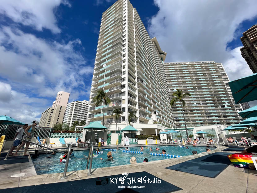 호텔 수영장은 2군데에 있었는데 다른 한 곳은 유아용이라고 해서 한 번도 보러 가지도 않고 계속 여기에서 놀았습니다.