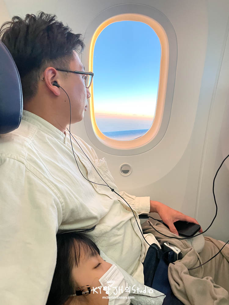 아침 기내식이 나올때쯤에 밖을 봈더니 해가 뜨기 직전이었습니다