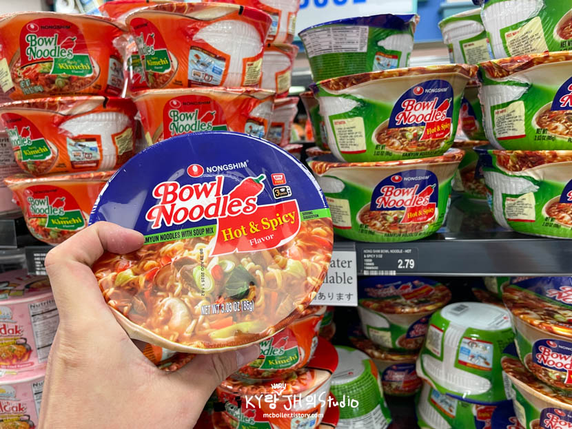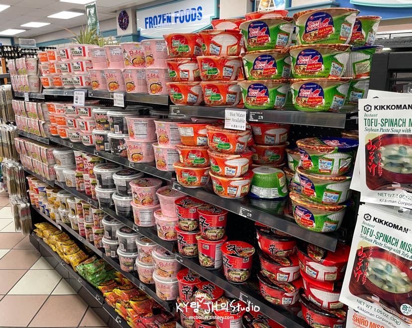 육개장 사발면 등 한국의 인스턴트 라면이 많이 있었습니다.