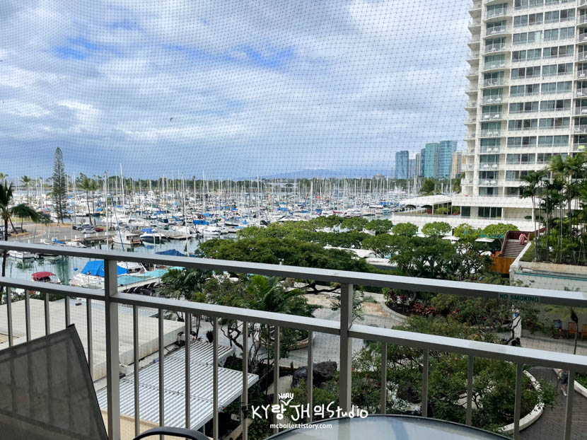 베란다 '알라와이 보트 하버' 뷰 였습니다.