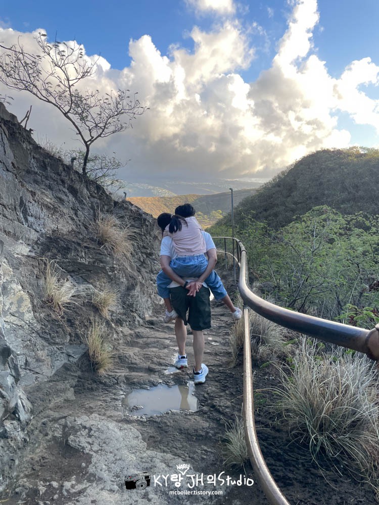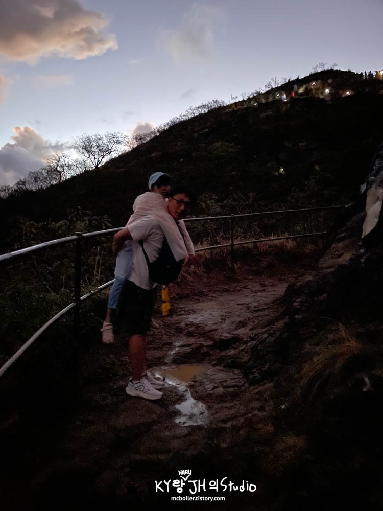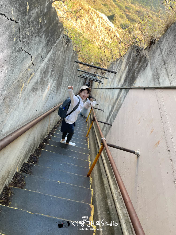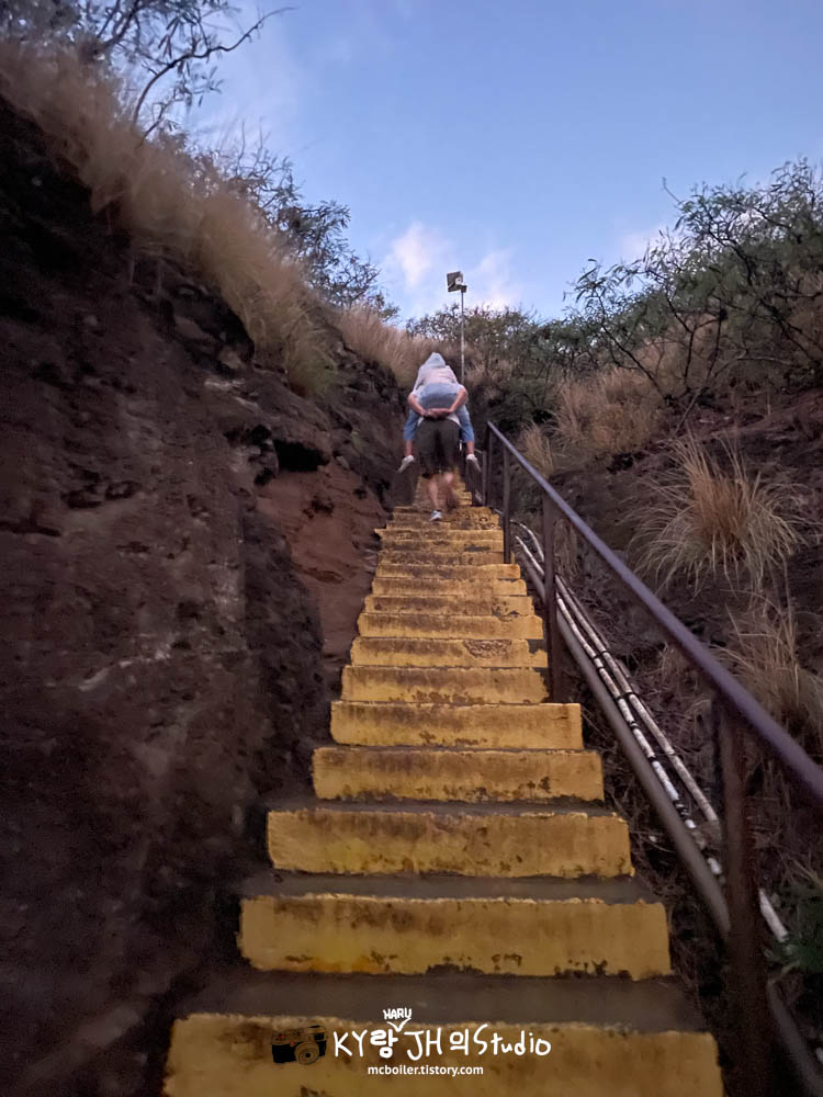 터널이 열리기 조금 전부터 갑자기 비가 강해져서 점점 더 추워졌습니다🚶비와 추위 때문에 자연스럽게 빠른 걸음으로 다이아몬드 헤드의 등산로 입구에 도착했습니다. 코로나 이후에는 사전 예약을 하지 않으면 오르지 못 올라가게 되어 있습니다.