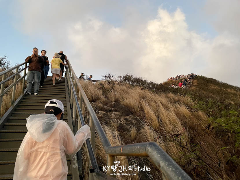 겨우 정상이 보였지만 이미 일출을 보러 온 사람들로 가득 이었습니다. 점점 날이 밝아 오면서 기분도 가벼워졌습니다.