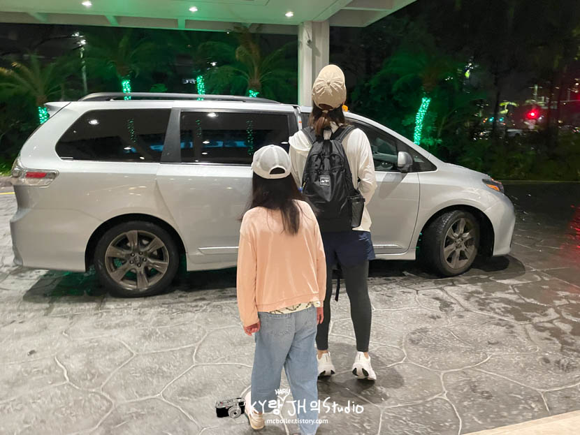 12/29(일) 이날은 다이아몬드 헤드에 올라가서 일출을 보기 위해 새벽에 일어 났습니다. 6시부터 올라갈 수 있어서 하나 택시를 5:35에 예약해서 이동했습니다. 밖은 아직 깜깜했습니다... 거기다가 가랑비가 내리고 있었습니다☔️