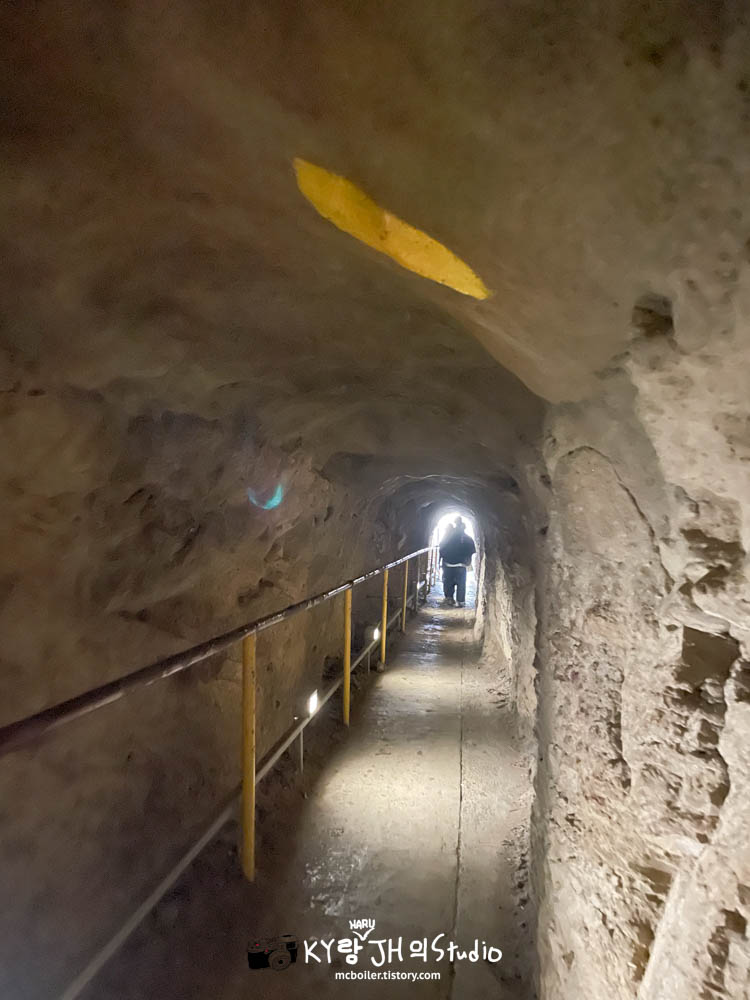 이 터널은 꽤 경사가 있었습니다 (사진은 내려갈 때 찍었기에 내리막 길) 올라갈 때 바로 뒤에 사람이 있어서 힘들어서 먼저 지나쳐 가길 바래도 좁아서 길을 비쳐 줄 수도 없어서 죽을힘을 다해 올라갔습니다.