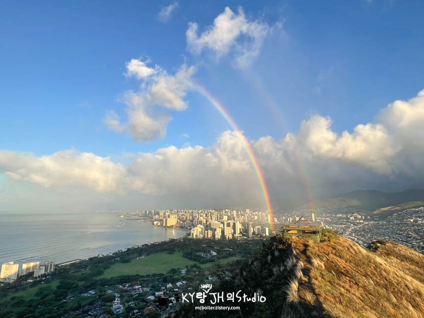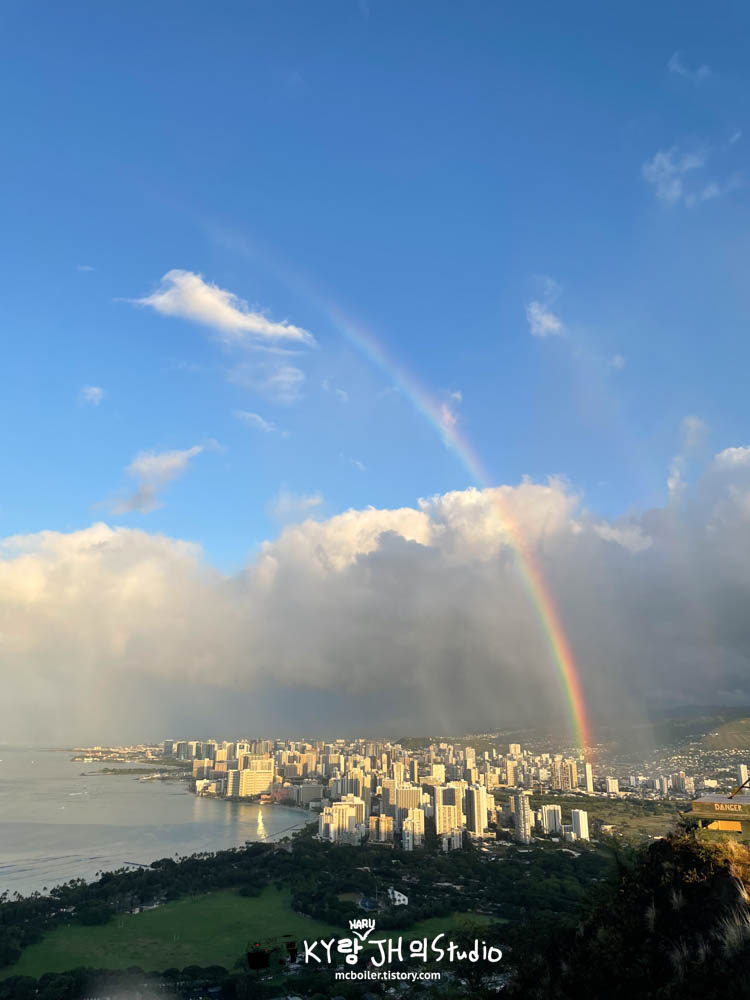 태양의 반대편(와이키키 쪽)을 보니 무지개가!