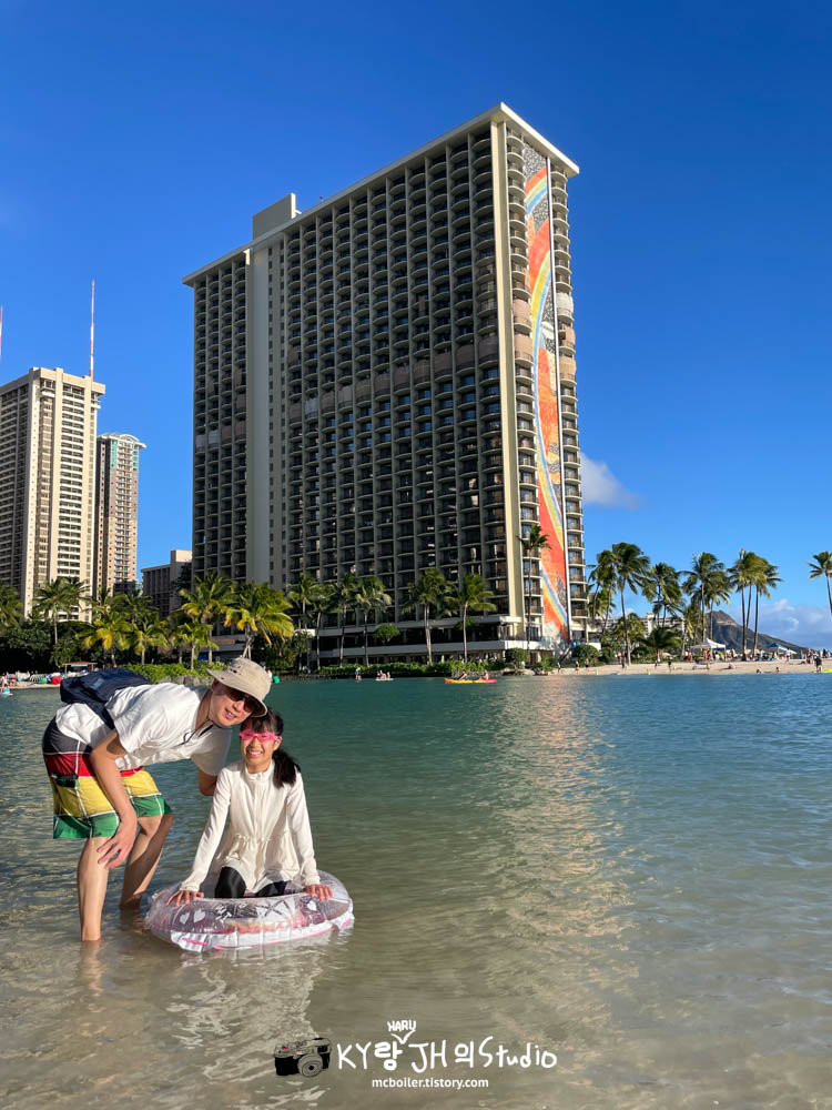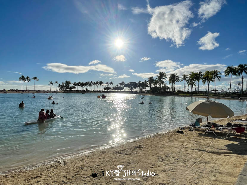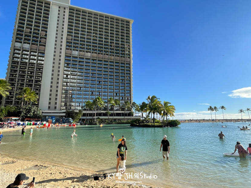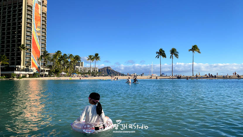 2024년 12월 29일 오후 3시쯤이었는데 아직 따뜻했기에 힐튼 하와이안 빌리지의 라군에