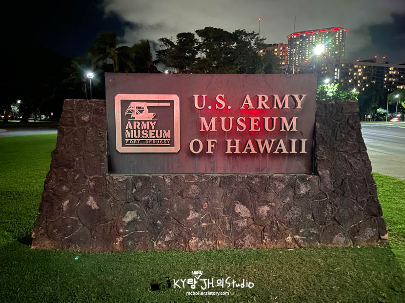 걸어서 호텔로 돌아가는 도중에 있던 하와이 육군 박물관. 아빠가 가보고 싶다고 해서 며칠 뒤에 가 봤는데 딸아이에게도 조금 공부가 되었다고 느꼈습니다.