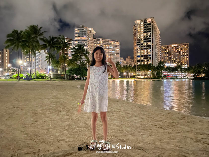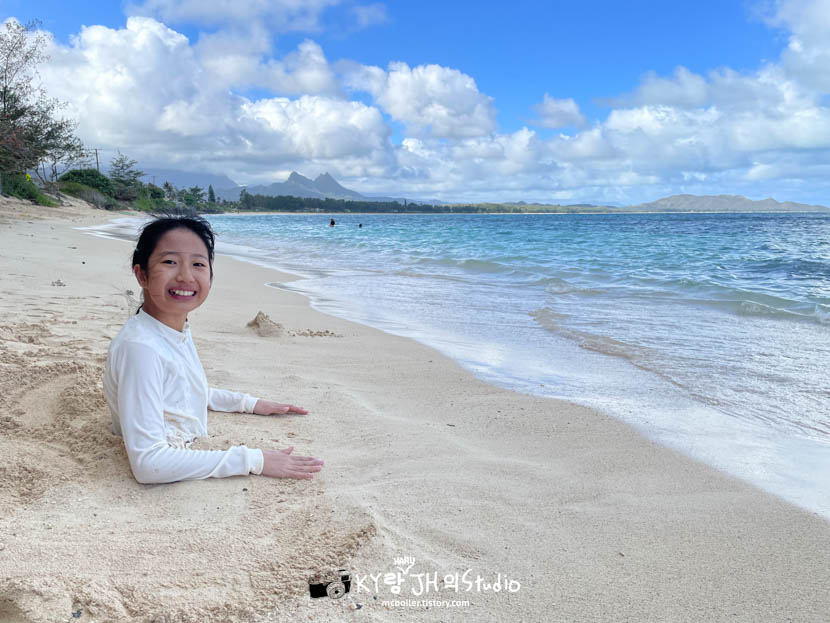 한동안 놀아서 즐거웠던 딸아이... 근데 비치가 정말로 하와이 같은 풍경🏝️✨