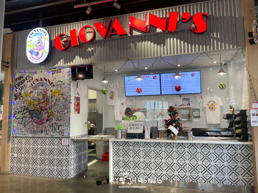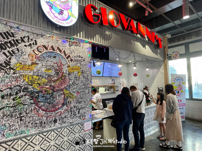 코스트코를 나온 뒤에는 와이키키까지 돌아와서 카카아코 에리어에. 목적은 H MART(한국계 슈퍼)가 아니라 여기 2층에 있는 갈릭 쉬림프로 유명한 '지오반니'였습니다.