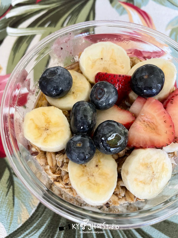 호텔에 돌아와서 먹은 아사이 볼. 여기는 꿀을 꽤 많이 뿌려서 달았습니다. 다이아몬드 헤드에 올라갔다 온 뒤에 먹은 보가트 카페의 아사이볼이 더 자연스러운 단 맛으로 좋았습니다.